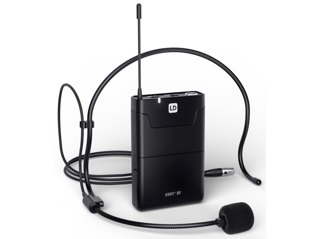 - Zestaw z bezprzewodowym nadajnikiem bodypack i mikrofonem nagłownym