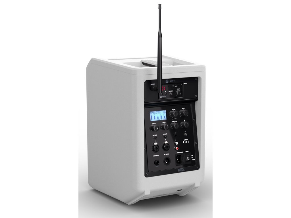 Dzięki zintegrowanemu 5-kanałowemu mikserowi, 3-pasmowemu korektorowi, 5 ustawieniom wstępnym dla różnych zastosowań (MUSIC, LIVE, VOCAL, ECO, FLAT) i efektom, takim jak reverb & delay, łączy w sobie kompleksowe funkcje i doskonałą jakość dźwięku w kompaktowej i ponadczasowej konstrukcji. ANNY 8 zachwyca wszechstronnymi opcjami podłączeń: dwa wejścia combo mikrofon/linia, jeden kanał stereo z gniazdem 3,5 mm (AUX) i wejściami RCA, a także Bluetooth 5.0 z kodekiem AAC. Ta gama wejść pozwala na szeroki zakres ustawień z połączeniem mowy i muzyki. Wejście przełącznika nożnego umożliwia łatwe i bez użycia rąk przełączanie efektów reverb & delay za pomocą zewnętrznego przełącznika nożnego podczas grania lub śpiewania.