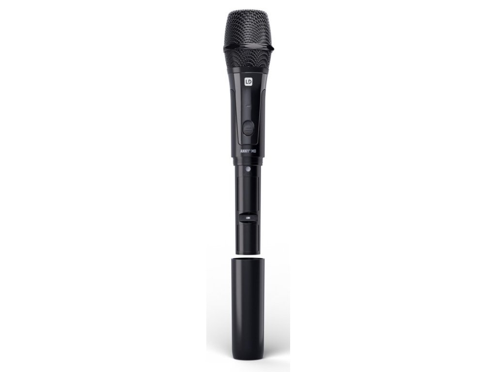 Bezprzewodowy dynamiczny mikrofon ręczny ANNY z kapsułą kardioidalną nadaje w paśmie częstotliwości B6 w zakresie częstotliwości 655 - 679 MHz. Dzięki mocy wyjściowej 10 mW mikrofon bezprzewodowy umożliwia przesyłanie dźwięku na odległość do 80 metrów. Mikrofon można łatwo i wygodnie zsynchronizować z odbiornikiem ANNY za pomocą sygnału podczerwieni. Mikrofon ANNY MD jest zasilany dwiema bateriami AA (dołączone do zestawu) i może pracować do 8 godzin bez wymiany baterii. Wbudowana dioda LED stanu świeci na biało po włączeniu i na czerwono, gdy bateria jest rozładowana.