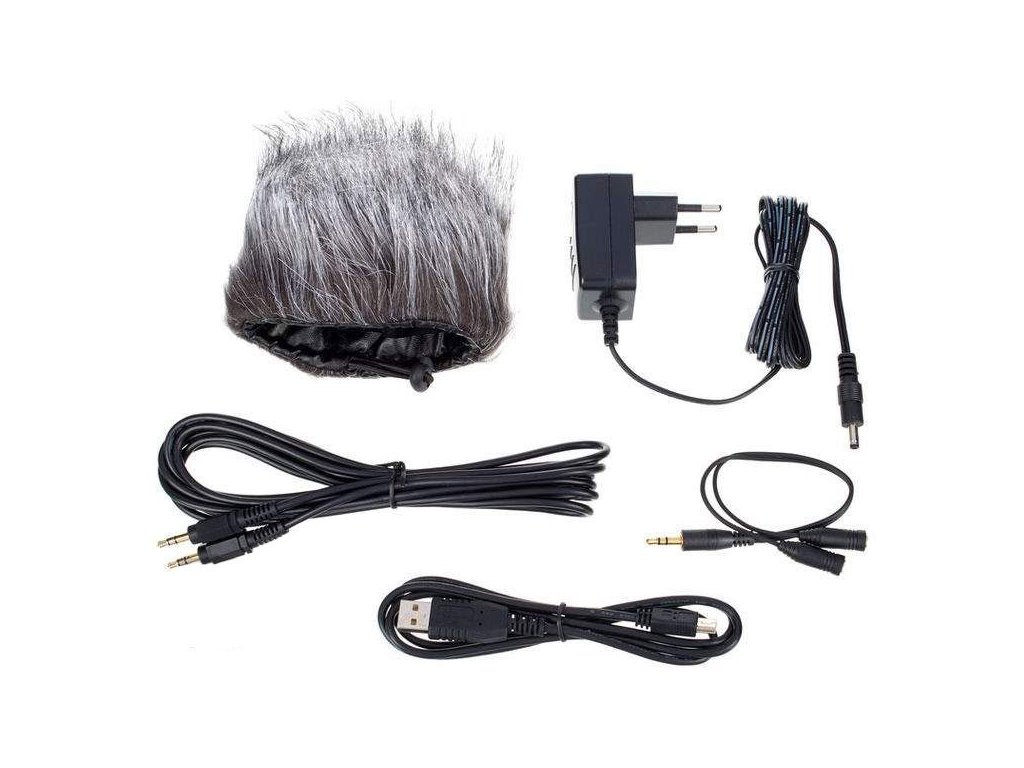 Zestaw akcesoriów do rejestratora Zoom H4n odpowiedni do nagrywania lustrzanką cyfrową. Zawiera osłonę przeciwwietrzną, kabel rozdzielający, kabel połączeniowy (Attenuator cable), kabel USB i zasilacz AD-14 AC.