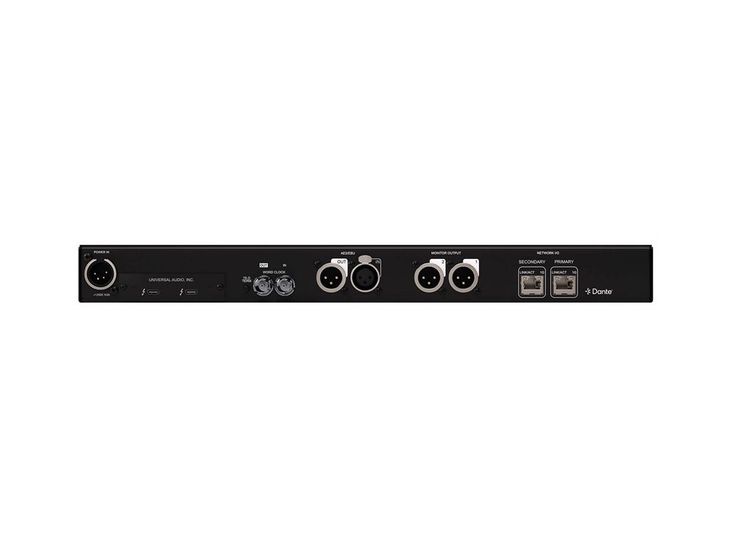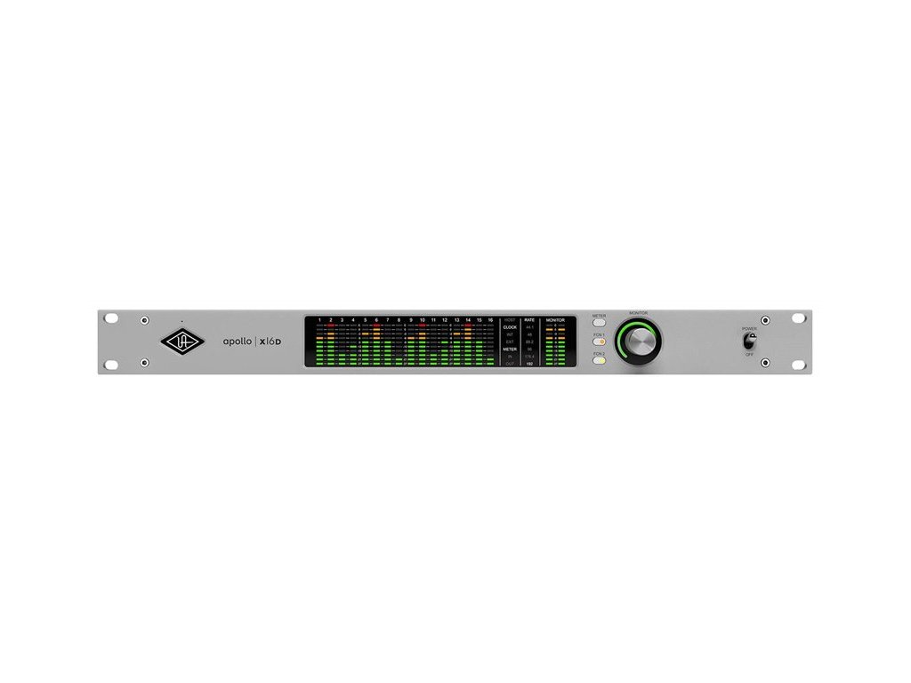 Apollo x16D Essentials to karta dźwiękowa z serii Apollo z połączeniem Thunderbolt i Dante o rozdzielczości do 192 kHz/24-bit. Do monitorowania sygnału służą dwa analogowe symetryczne wyjścia na złączach XLR (canon). AES-EBU In/Out oferuje podłączenie cyfrowych procesorów, a do synchronizacji z innymi urządzeniami posiada interfejs Word Clock In/Out. Na przednim panelu znajduje się 18 wskaźników LED poziomów wejść i wyjść; jednocześnie wyświetlacz pokazuje synchronizację i aktualną częstotliwość próbkowania. Wewnętrzny procesor Hexa core umożliwia przetwarzanie do 200 wtyczek UAD w czasie rzeczywistym.