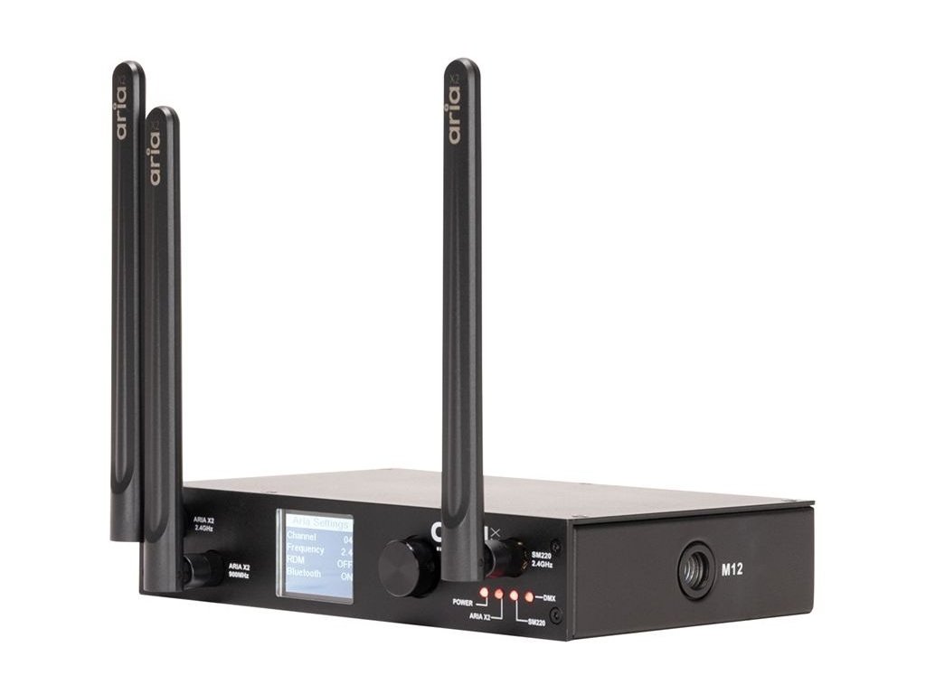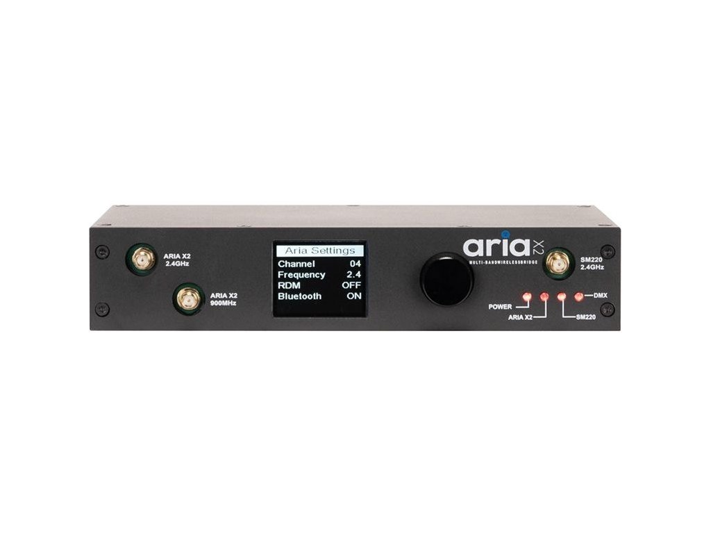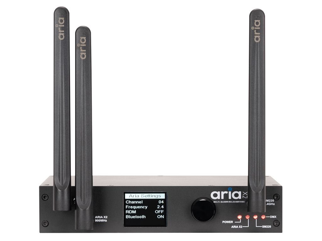 Przedstawiamy bezprzewodowy system sterowania Aria do zaawansowanego sterowania oświetleniem na występach, koncertach lub w sklepie. Aria X2 Bridge wypełnia lukę między nowym szeregowym protokołem Aria X2 a istniejącymi bezprzewodowymi rozwiązaniami DMX. Aria X2 Bridge jest również kompatybilny z ADJ WiFLY, Elation eFly, Magmatic MagFly i Acclaim Aria.