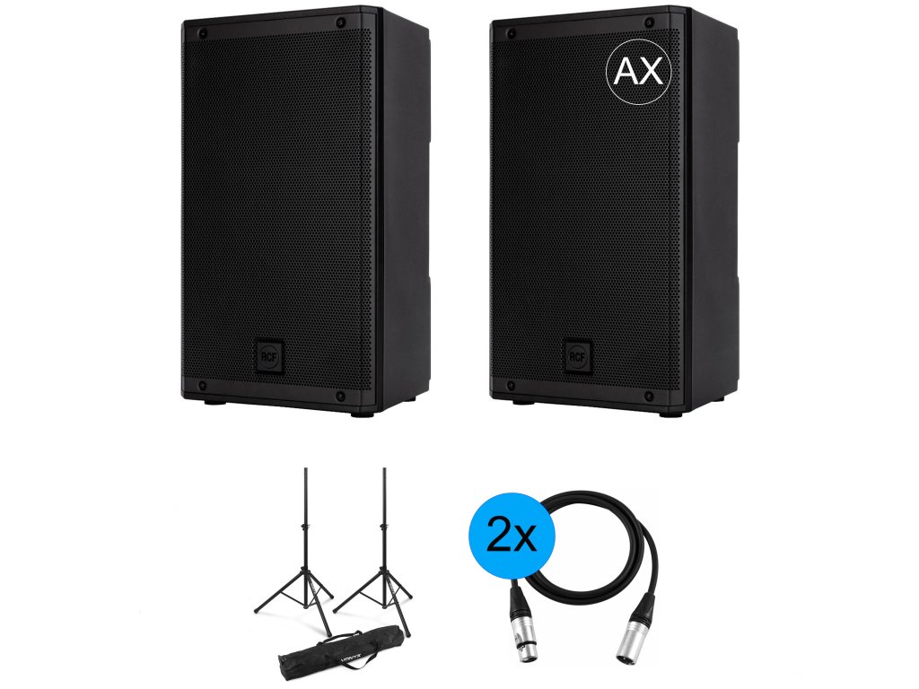 Korzystny zestaw 2 szt. aktywnych kolumn głośnikowych RCF ART 910-A + ART 910-AX, 2 szt. kabli połączeniowych Vonyx CX310-6 6m oraz zestawu statywów z futerałem transportowym Vonyx LS01K.