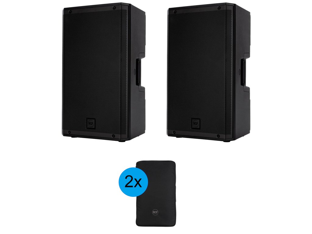 Korzystny zestaw 2 szt. aktywnych kolumn głośnikowych RCF ART 932-A i 2 szt. oryginalnych pokrowców na kolumny głośnikowe RCF.