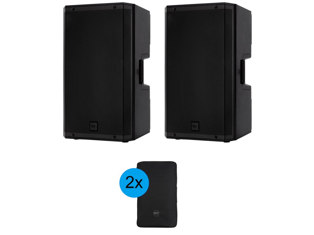 Korzystny zestaw 2 szt. aktywnych kolumn głośnikowych RCF ART 935-A i 2 szt. oryginalnych pokrowców na kolumny głośnikowe RCF.