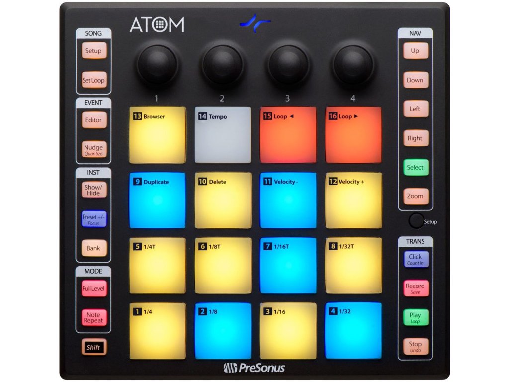 Intuicyjny i łatwy w użyciu ATOM to więcej niż tylko ekspresyjny kontroler padów MIDI: to także kontroler produkcji i wydajności. Dzięki czułym na prędkość i nacisk padom możesz grać na wirtualnych instrumentach na żywo z niesamowitą ekspresją. Poruszaj się po sesji, nie patrząc na ekran. Zautomatyzuj przejścia filtrów za pomocą czterech czułych pokręteł. Gdziekolwiek zaprowadzi Cię inspiracja, ATOM pozwoli Ci skupić się na muzyce.