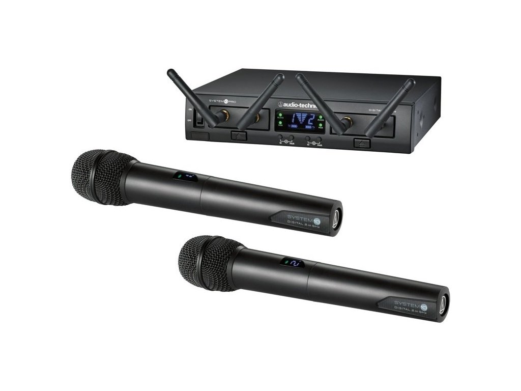 - Typ: Podwójny zestaw bezprzewodowy z 2x mikrofonem ręcznym