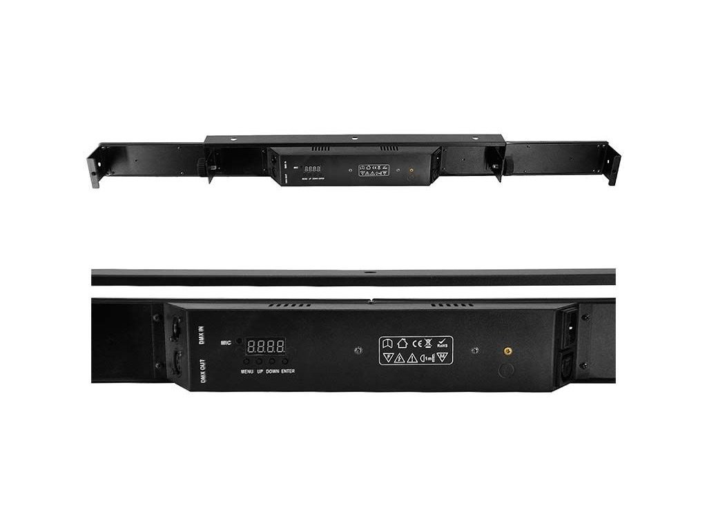 Aura Bar V2 może być sterowany na różne sposoby. W dolnej części obudowy znajduje się 3-pinowe wejście i wyjście XLR do sterowania urządzeniem za pomocą protokołu DMX oraz łatwy w obsłudze panel sterowania w postaci cyfrowego wyświetlacza LED i czterech przycisków (Menu, Góra, Dół, Enter). Umożliwiają one ustawienie statycznego koloru, który będzie emitował liniowy reflektor, lub wybór jednego z kilku dostępnych trybów pracy pixel bara: