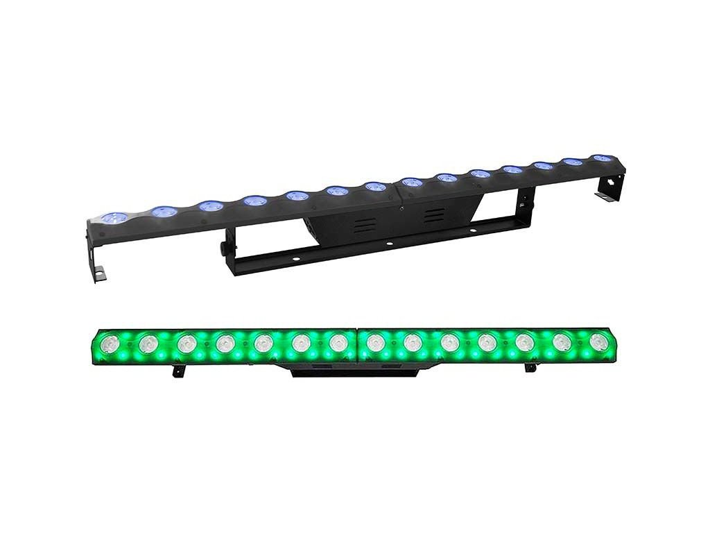 Light4Me Aura Bar V2 to nowoczesna listwa LED Wash, wyposażona w 14 mocnych diod 3W CREE LED pracujących z białym światłem o temperaturze barwowej 2600 Kelwinów. Są one wspierane przez symetryczny układ 56 diod SMD 5050 pracujących w palecie kolorów RGB, tworzących dodatkowy efekt kolorowego oświetlenia paska. Światło LED jest idealne do techniki scenicznej i dekoracji świetlnych, oferuje m.in. funkcje takie jak Pixel Control (sterowanie każdą diodą osobno) lub stroboskop. Z powodzeniem znajdzie zastosowanie w klubach, dyskotekach, salach weselnych, a także jako wewnętrzne oświetlenie architektoniczne.