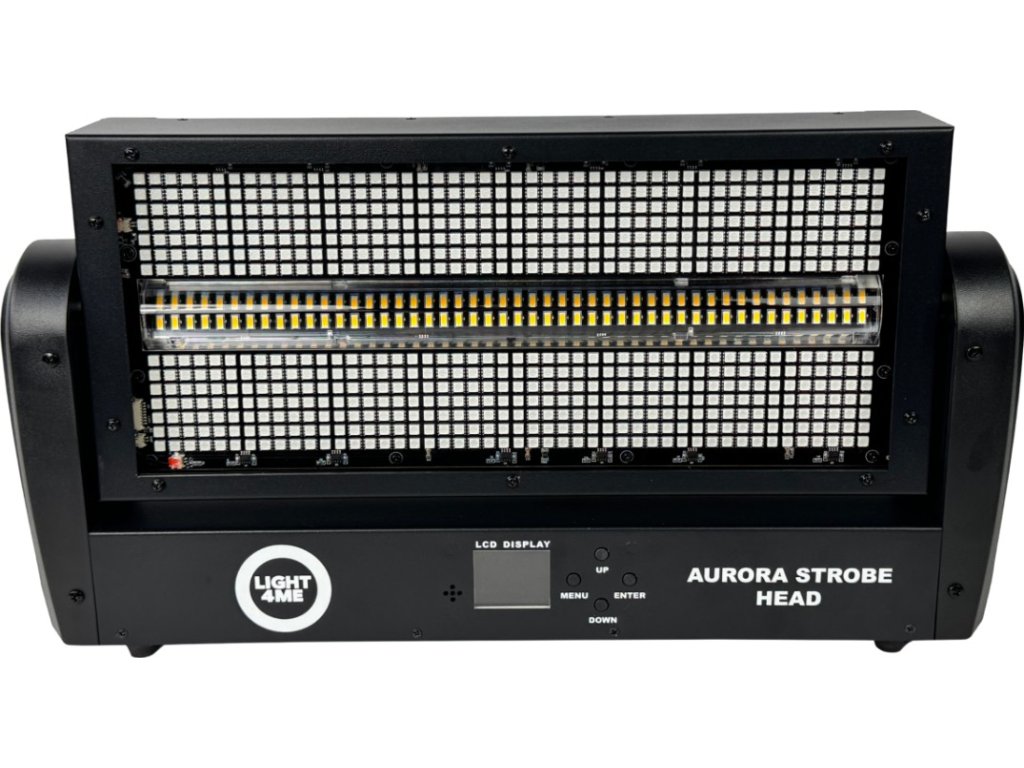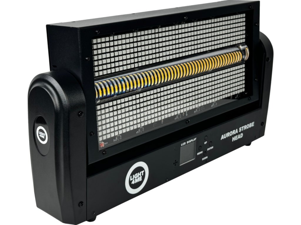Light4Me Aurora Strobe Head to obrotowa głowica stroboskopowa, która zachwyca zarówno precyzją wykonania, jak i szeroką gamą efektów. Idealna do klubów, sal koncertowych, imprez plenerowych czy dla mobilnych DJ-ów. Zaprojektowana z myślą o profesjonalistach, ale łatwa w obsłudze nawet dla ambitnych hobbystów. Zachwyca 672 diodami RGB (kolor czerwony, zielony, niebieski) SMD5050 o mocy 0,2 W każda oraz 144 diodami WW (ciepła biel) SMD3030 o mocy 1 W każda, tworząc intensywny, dynamiczny efekt świetlny, który nie pozostanie niezauważony.