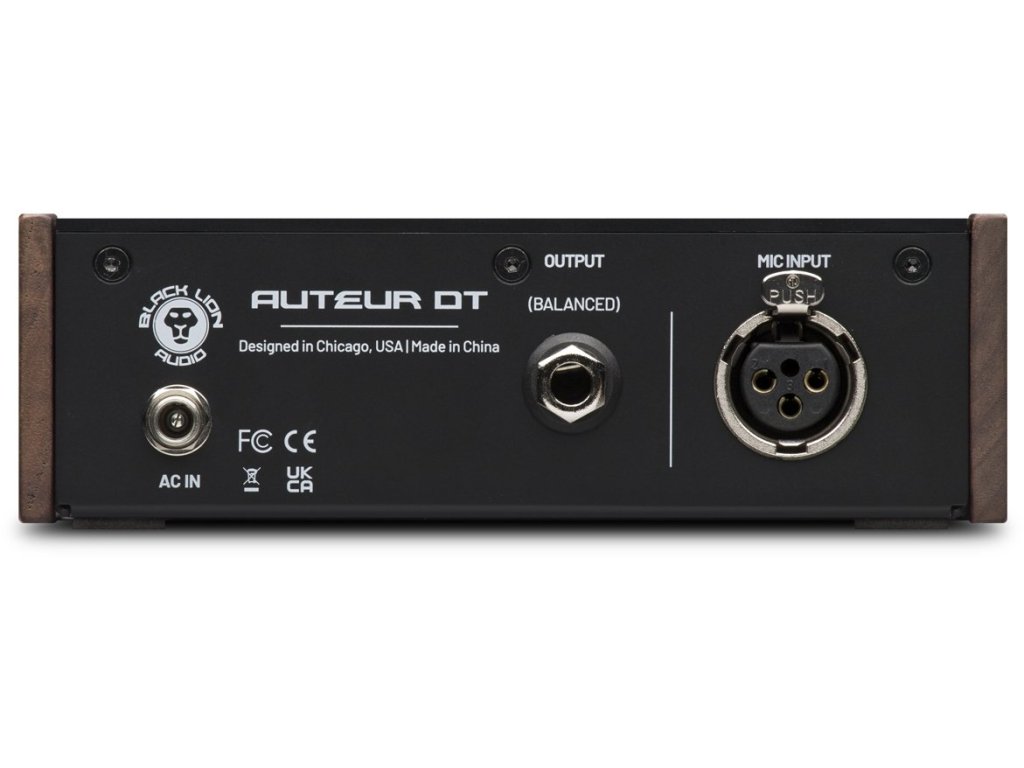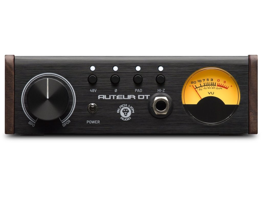 Auteur DT włącza się za pomocą przełącznika dźwigienkowego na przednim panelu. Duże, łatwe do uchwycenia pokrętło do regulacji wzmocnienia do 60 dB oraz podświetlany miernik VU w klasycznym stylu umożliwiają precyzyjne i delikatne ustawienie żądanego poziomu.