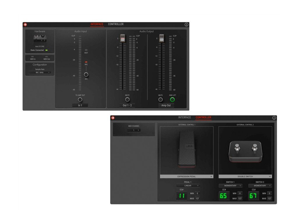 Do zintegrowanego gniazda TRS 6,3 mm dla pedałów zewnętrznych można podłączyć albo pedał ekspresji, albo do dwóch pedałów przełączających typu Switch. Można ich wtedy użyć do sterowania AmpliTube lub innym oprogramowaniem podczas grania. Typowym zastosowaniem pedału ekspresji jest np. Volume lub Wah-Wah, pedały przełączające można wtedy wykorzystać do przełączania kanałów, tapowania echa, aktywacji Reverbu lub do wielu innych funkcji.