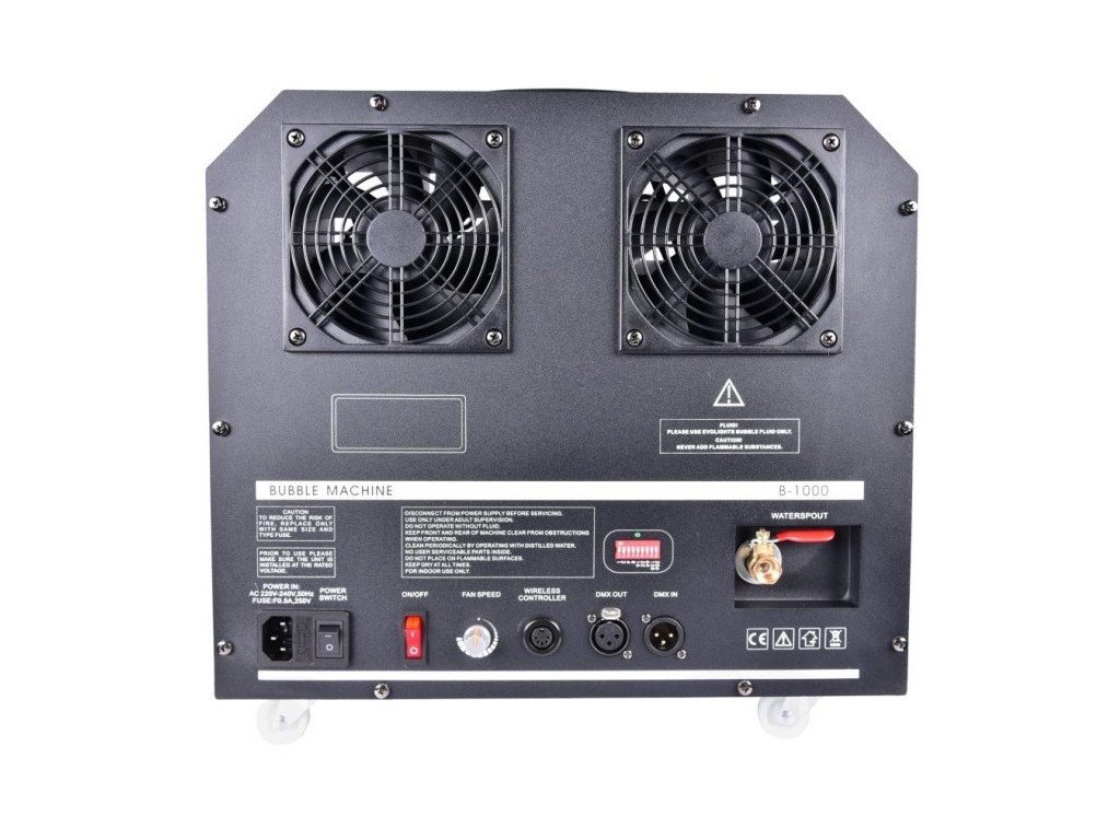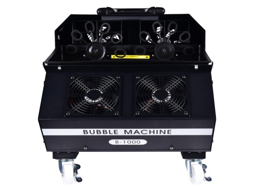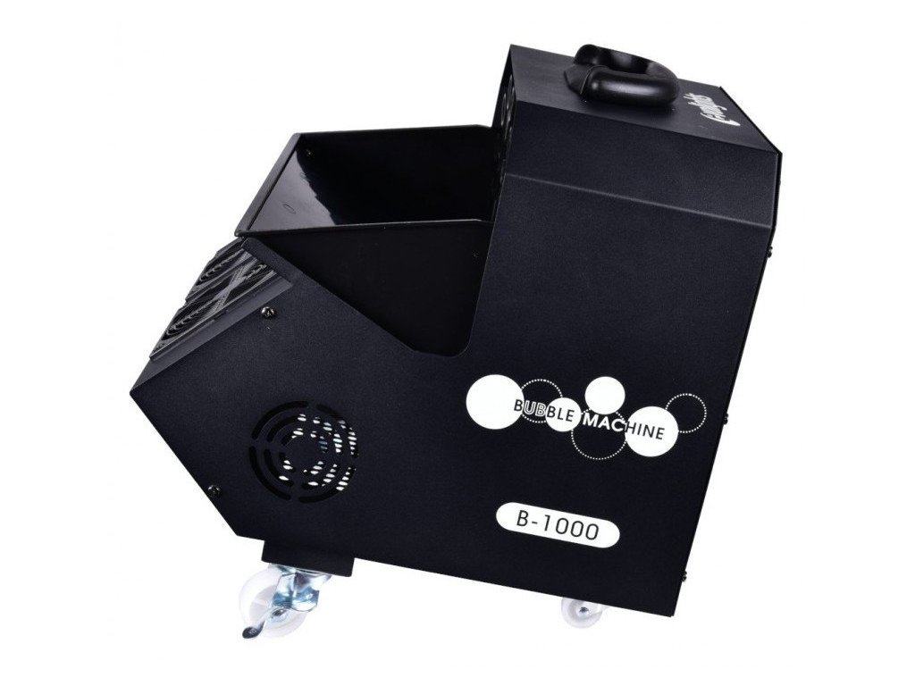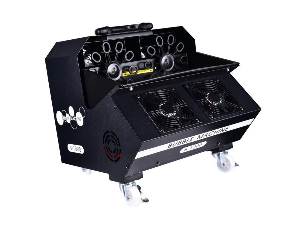 Profesjonalna i bardzo wydajna wytwornica baniek mydlanych, która doskonale sprawdza się na wszystkich rodzajach imprez. Urządzenie może być sterowane ręcznie, za pomocą bezprzewodowego pilota lub przez DMX. B1000 jest wyposażony w dwa rotacyjne generatory baniek i duży pojemnik na płyn, czyli 1 litr na ponad 100 minut ciągłej pracy. Nadmiar płynu spływa do specjalnego pojemnika, który można umyć i opróżnić po użyciu. Ruch obrotowy silnika przenoszony jest na generatory za pomocą specjalnych pasów napędowych, dzięki czemu ruchome części są całkowicie bezpieczne.