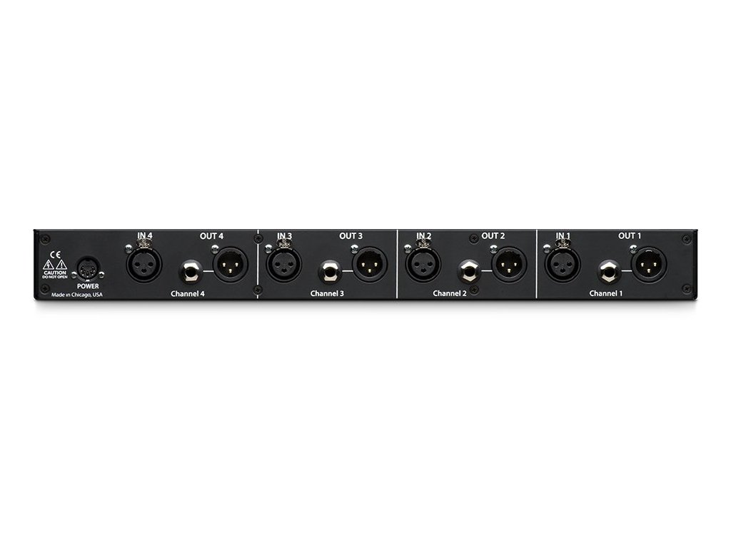 Dla każdego kanału - regulacja poziomu wejściowego i wyjściowego, zasilanie fantomowe +48 V, odwrócenie fazy i Oad.. Na pierwszych dwóch kanałach przełącznik wyboru wejścia Hi-Z. Wszystkie wejścia posiadają czytelne wskaźniki poziomów. Symetryczne wyjście każdego kanału jest wyposażone w równolegle połączone złącza XLR i TRS 6,3 mm. B12A Quad jest zasilany zewnętrznym źródłem zasilania, aby zapewnić jak najlepszą separację od niepożądanych zakłóceń.