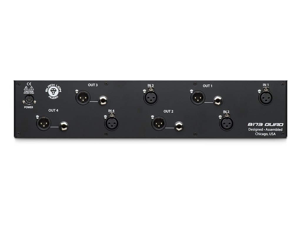 Wejściowe (12 pozycji) i wyjściowe regulatory na każdym kanale, przełącznik zasilania phantom +48V i odwrócenie fazy. Na pierwszych dwóch kanałach przełącznik wyboru wejścia Hi-Z. Wszystkie wejścia posiadają czytelne wskaźniki poziomu głośności. Wyjścia każdego kanału są wyposażone w równoległe wyjście Jack / XLR. B173 Quad jest zasilany zewnętrznym źródłem zasilania, aby zapewnić jeszcze lepszą izolację przed niepożądanymi zakłóceniami.