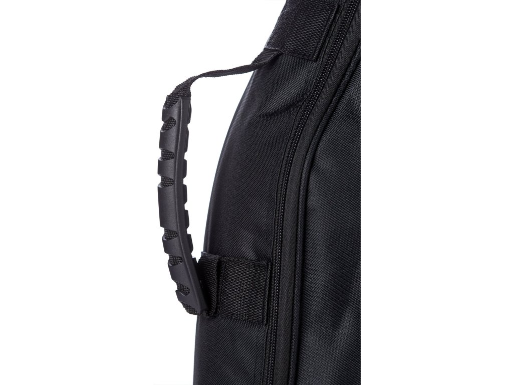 Seria Training Line marki Bespeco oferuje niedrogie pokrowce na gitary z miękkim, 10-milimetrowym wyściełaniem. Te pokrowce doskonale sprawdzą się dla wszystkich, którzy szukają niezawodnej ochrony dla swojego instrumentu. Wykonane są z mocnego poliestru, który się nie rozdziera i chroni gitarę przed kurzem i niekorzystnymi warunkami atmosferycznymi. Pokrowiec jest wyposażony w wygodny, ergonomiczny uchwyt i regulowane paski do noszenia na plecach. Przestronna przednia kieszeń oferuje miejsce do przechowywania wszystkich akcesoriów. Na spodzie pokrowiec jest wyposażony w gumowe podkładki, które chronią gitarę podczas gwałtownego odkładania. Wewnątrz pokrowiec jest wzmocniony w obszarze mostka i mechanizmów stroikowych, co zapewnia zwiększoną ochronę delikatnych elementów instrumentu.