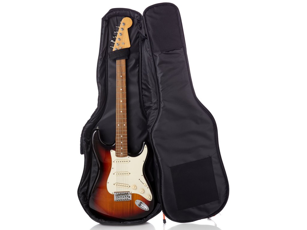 Seria Training Line marki Bespeco oferuje niedrogie pokrowce na gitary z miękkim, 10-milimetrowym wyściełaniem. Te pokrowce doskonale sprawdzą się dla wszystkich, którzy szukają niezawodnej ochrony dla swojego instrumentu. Wykonane są z mocnego poliestru, który się nie rozdziera i chroni gitarę przed kurzem i niekorzystnymi warunkami atmosferycznymi. Pokrowiec jest wyposażony w wygodny, ergonomiczny uchwyt i regulowane paski do noszenia na plecach. Przestronna przednia kieszeń oferuje miejsce do przechowywania wszystkich akcesoriów. Na spodzie pokrowiec jest wyposażony w gumowe podkładki, które chronią gitarę podczas gwałtownego odkładania. Wewnątrz pokrowiec jest wzmocniony w obszarze mostka i mechanizmów stroikowych, co zapewnia zwiększoną ochronę delikatnych elementów instrumentu.