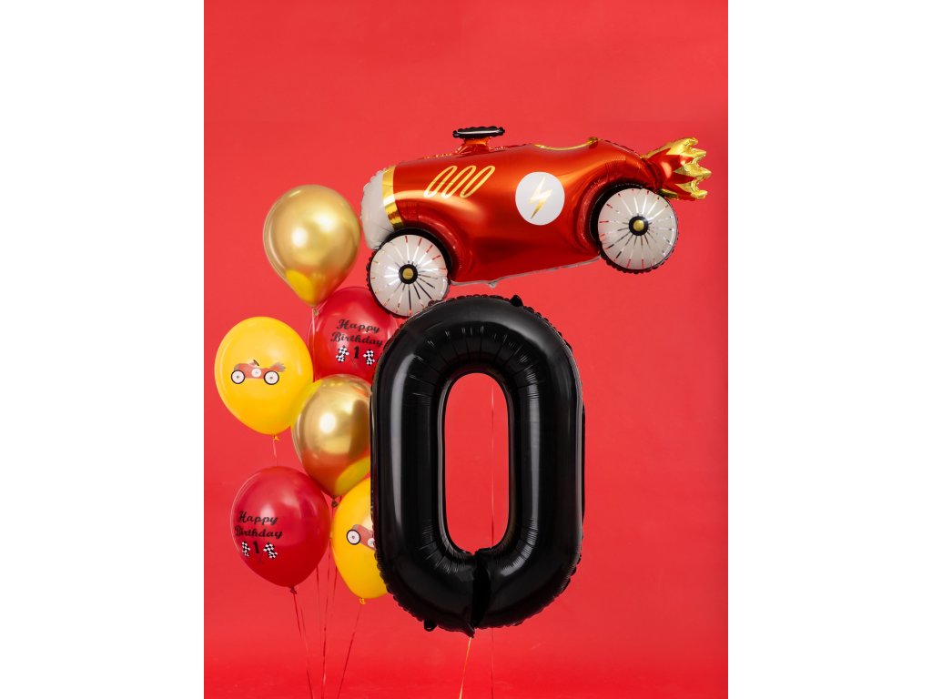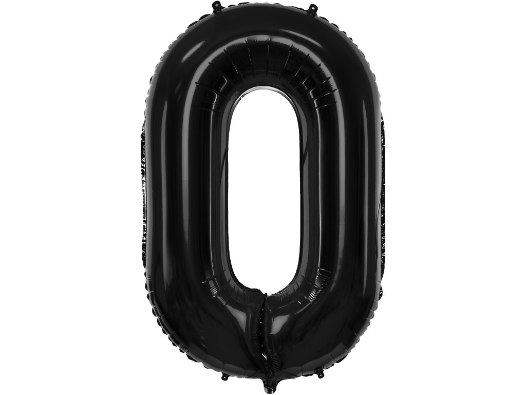 Balon z metalizowanej folii numer ''0'', w kolorze czarnym, rozmiar przed napompowaniem ok. 100 cm (39''), rozmiar po napompowaniu ok. 86 cm (34''). Napompuj helem lub powietrzem.