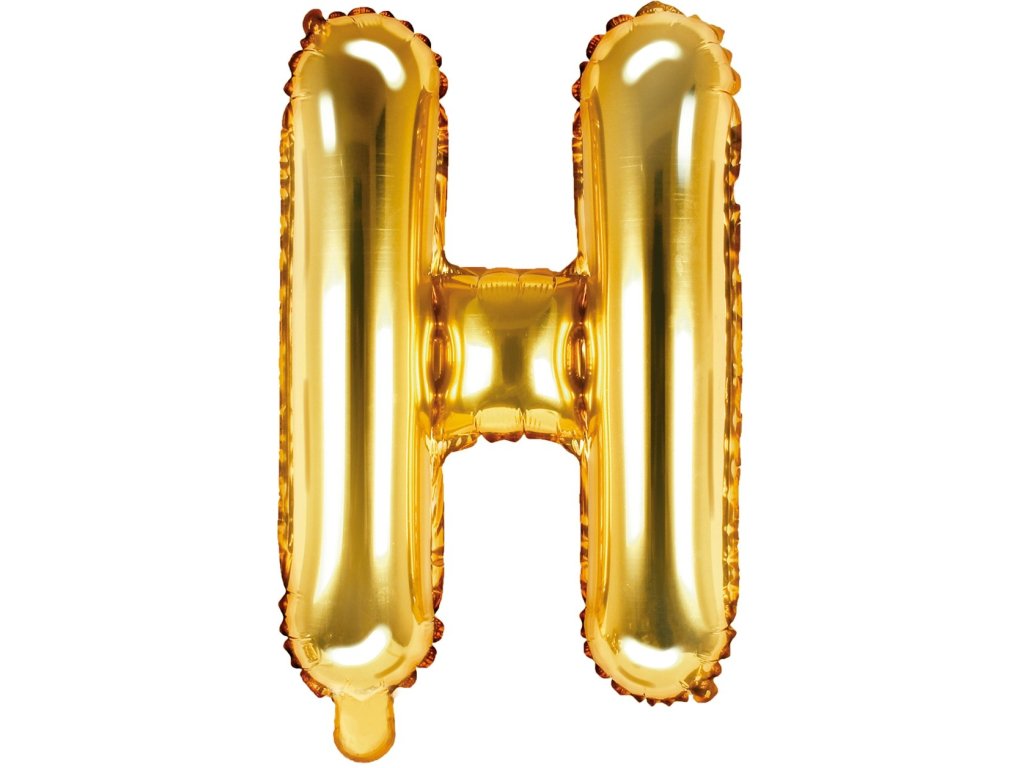Metaliczny balon foliowy litera ''H'', złoty, wielkość przed napompowaniem ok. 40 cm, wysokość ok. 35 cm. Napompuj powietrzem.Parametry dodatkowe