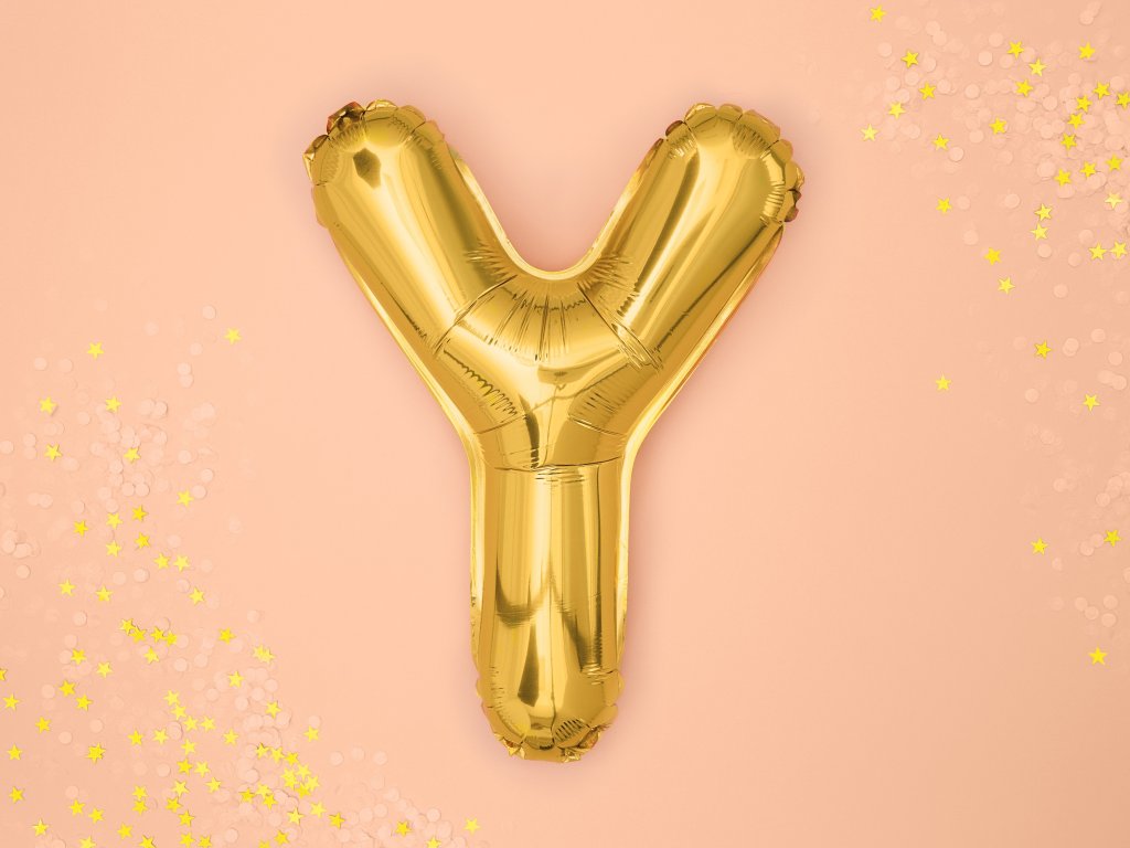 Metaliczny balon foliowy litera ''Y'', złoty, rozmiar przed napompowaniem ok. 40 cm, wysokość ok. 35 cm. Napompuj powietrzem.Parametry dodatkowe