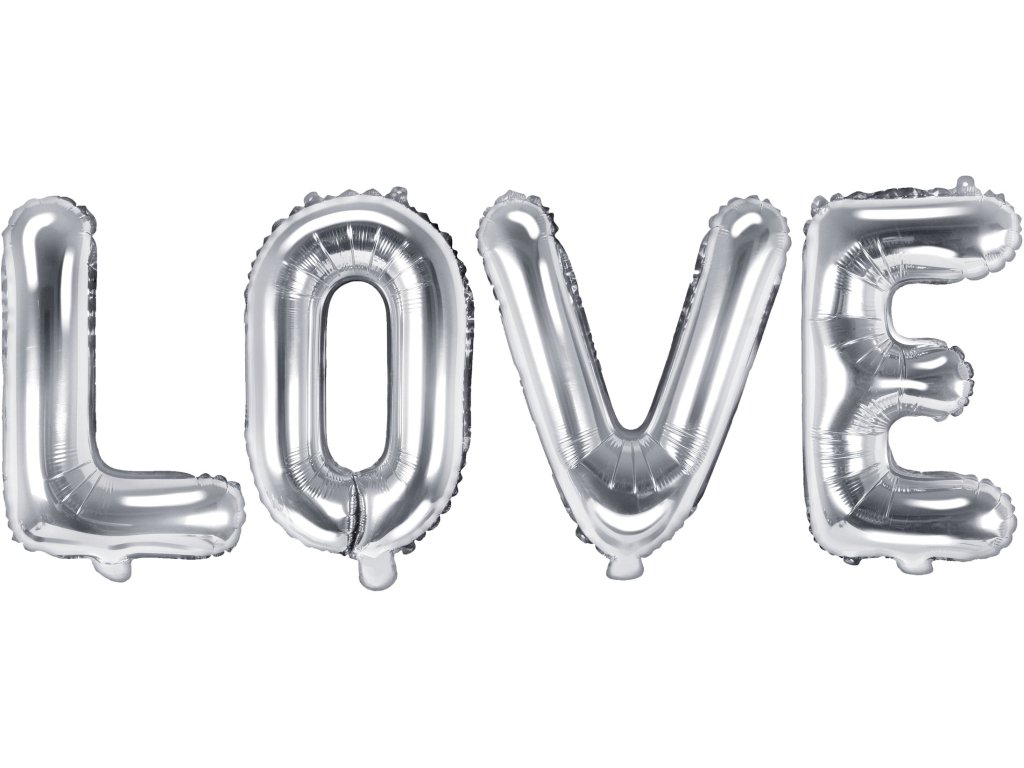 Balon Love z metalicznej folii, srebrny, rozmiar ok. 140 x 35 cm (55 x 14'').