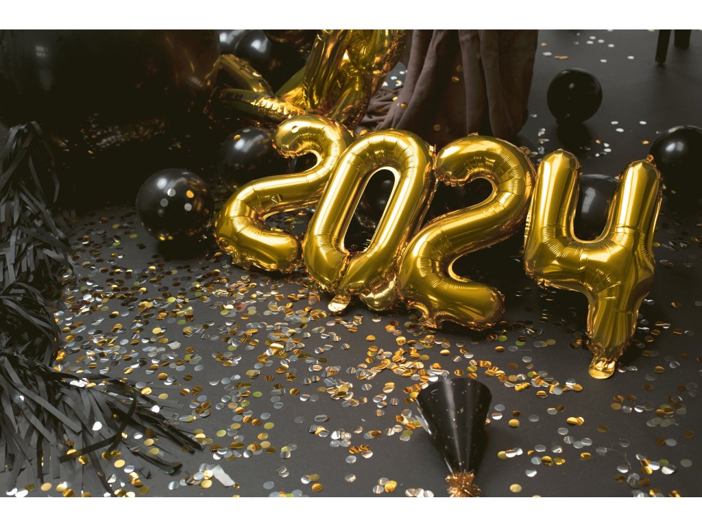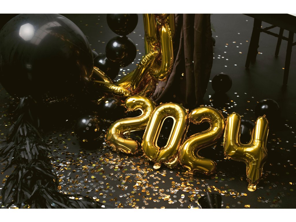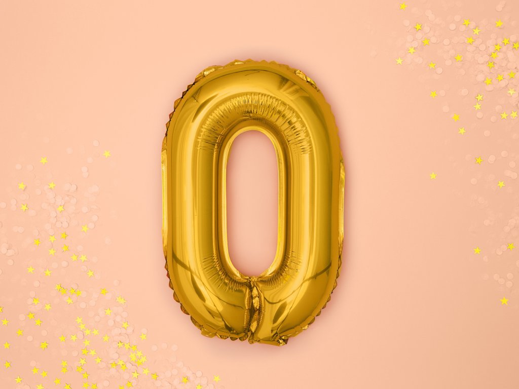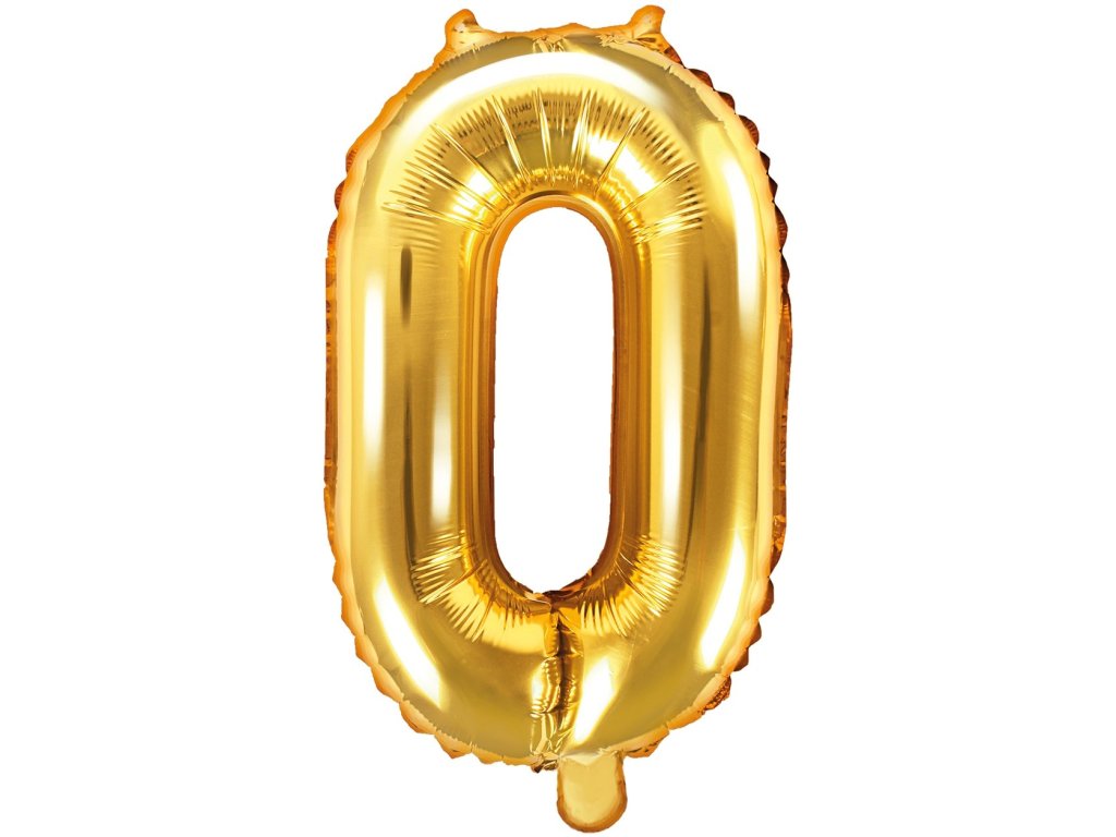 Balon z metalizowanej folii numer ''0'', złoty, rozmiar przed napompowaniem ok. 40 cm (16''), rozmiar po napompowaniu ok. 35 cm (14'').