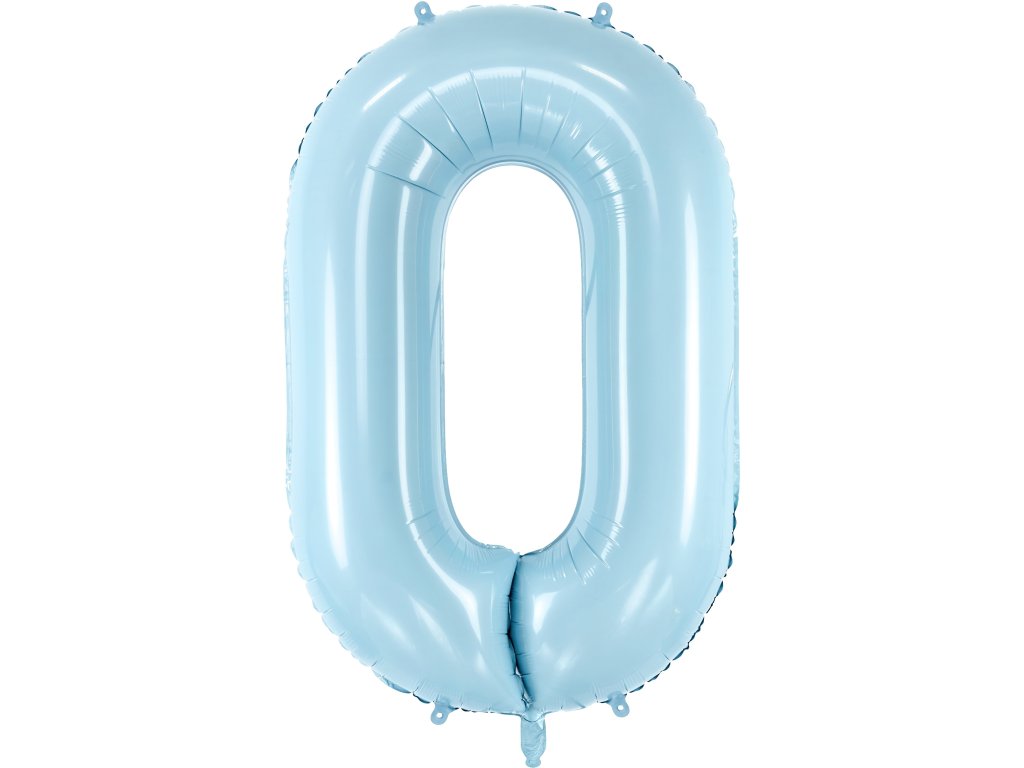 Balon z pastelowej folii numer ''0'', jasnoniebieski, rozmiar przed napompowaniem ok. 100 cm (39''), rozmiar po napompowaniu ok. 86 cm (34''). Napompuj helem lub powietrzem.