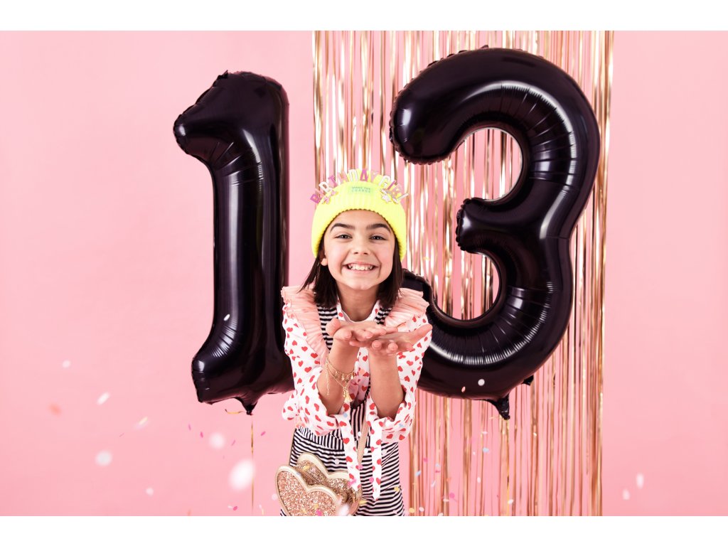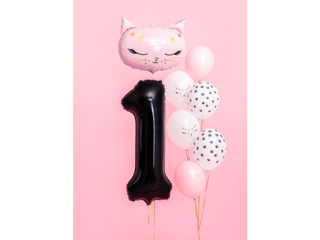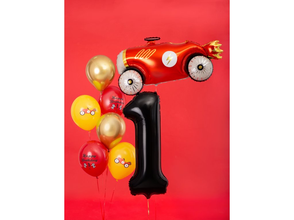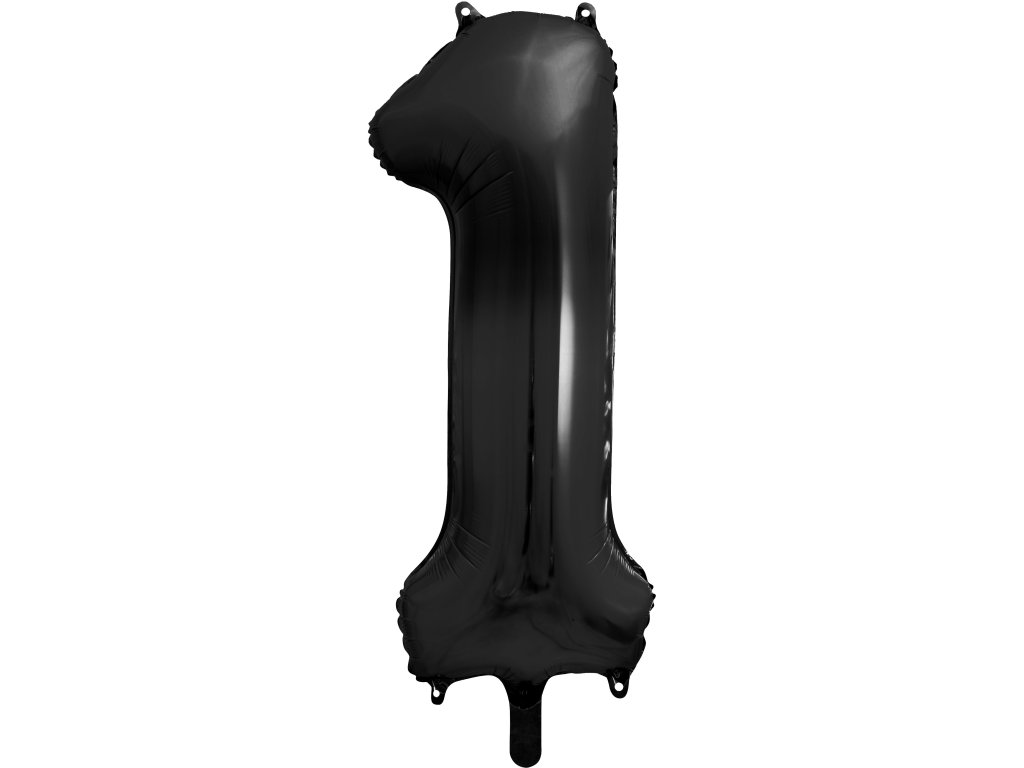 Balon z metalicznej folii numer "1", w kolorze czarnym, rozmiar przed napompowaniem ok. 100 cm (39''), rozmiar po napompowaniu ok. 86 cm (34''). Napełnia się helem lub powietrzem.