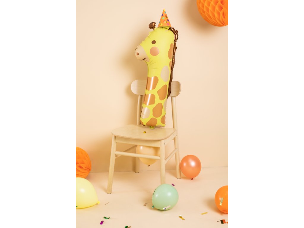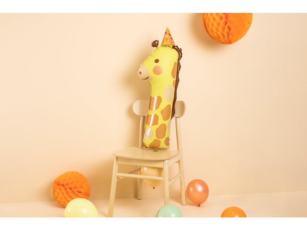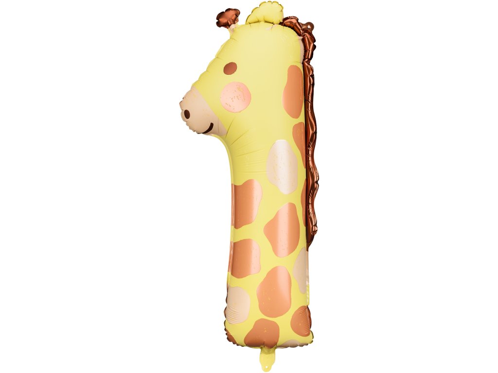 Balon foliowy numer 1 - Żyrafa, mieszanka kolorów, rozmiar przed napompowaniem ok. 42 x 90 cm (16,5 x 35''), rozmiar po napompowaniu ok. 31 x 82 cm (12 x 32''). Napompuj powietrzem lub helem.