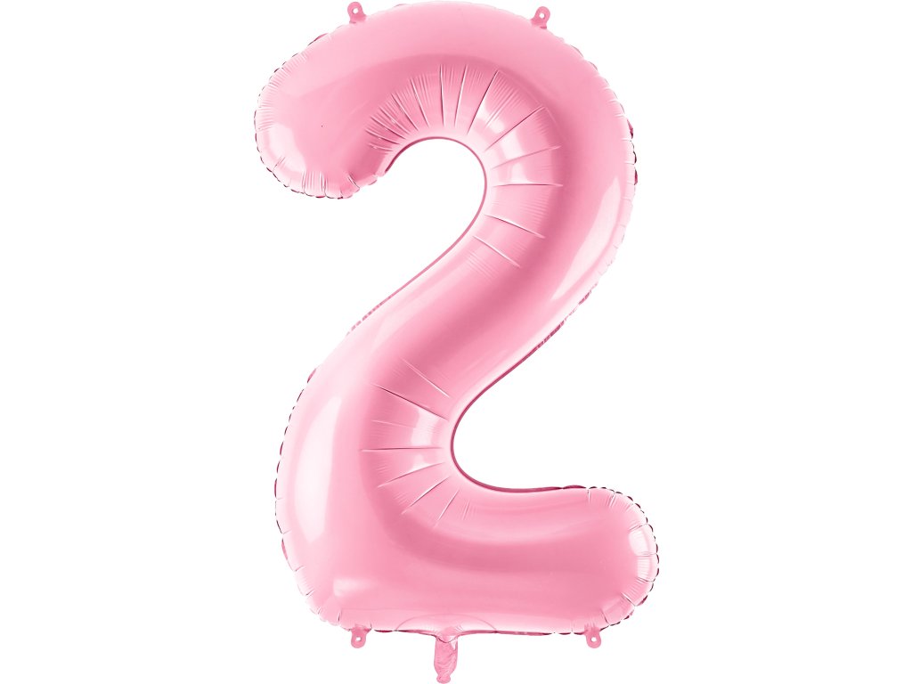 Balon z pastelowej folii numer ''2'', różowy, rozmiar przed napompowaniem ok. 100 cm (39''), rozmiar po napompowaniu ok. 86 cm (34''). Napompuj helem lub powietrzem.