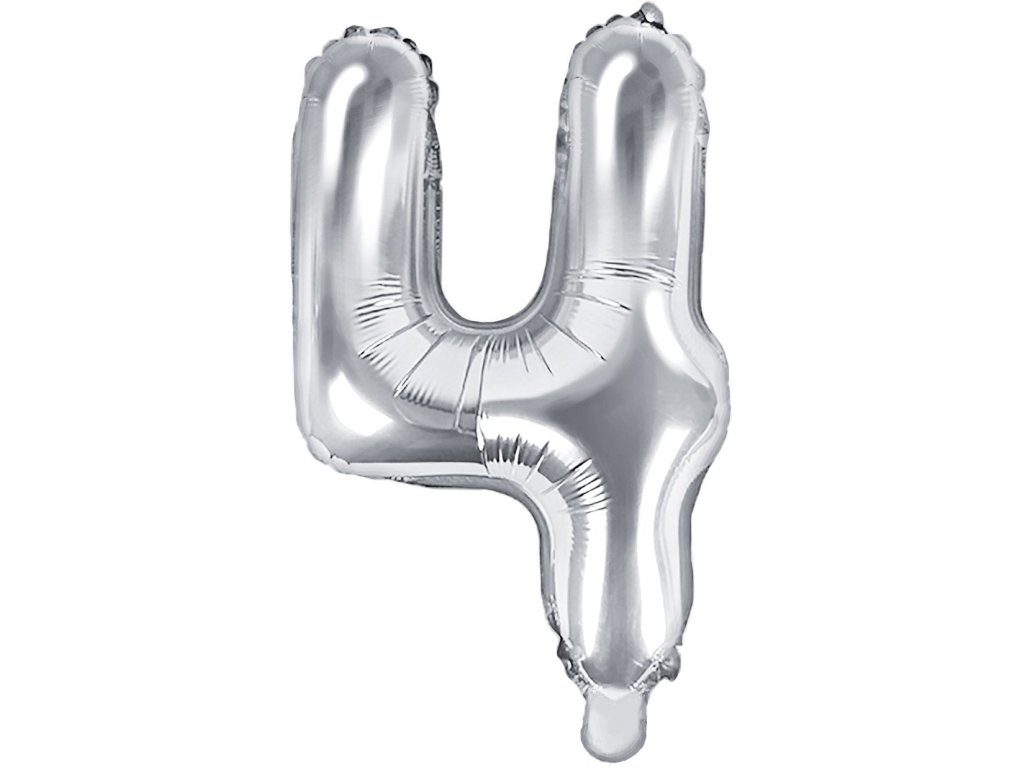 Foliový balón číslo 4, 35cm stříbrný