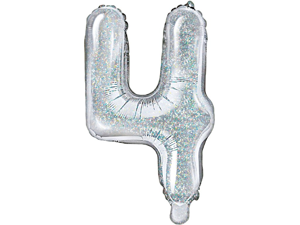 Balon foliowy holograficzny numer ''4'', holograficzny, rozmiar około 35 cm (14'').