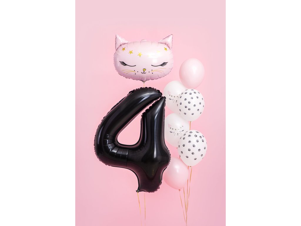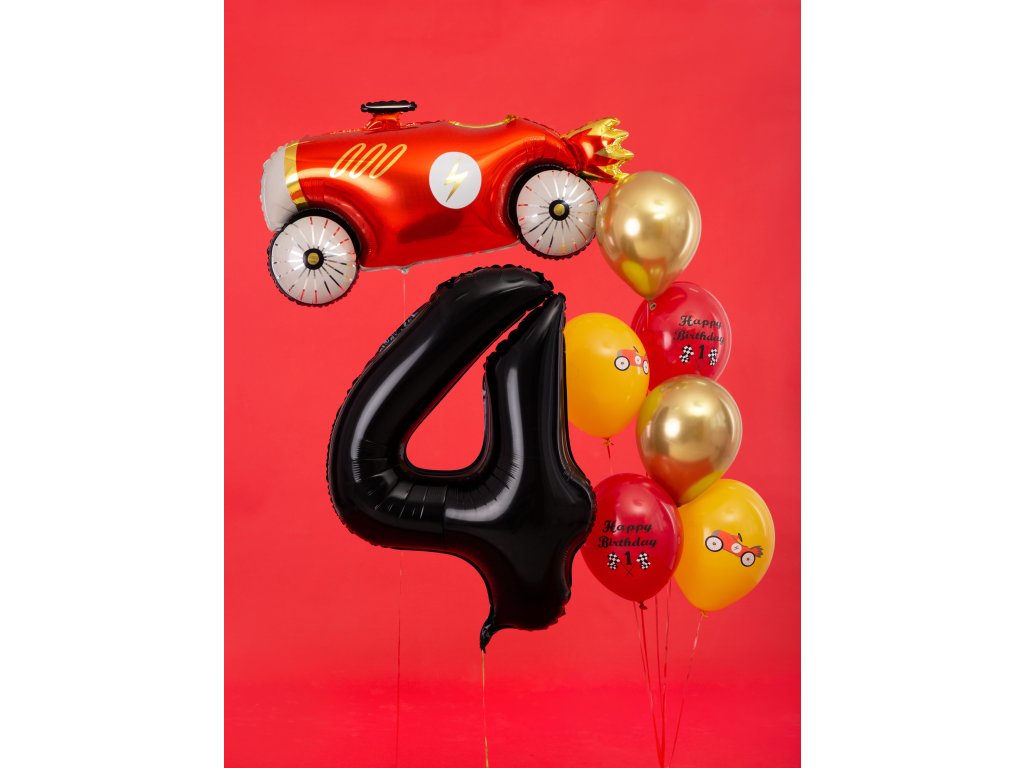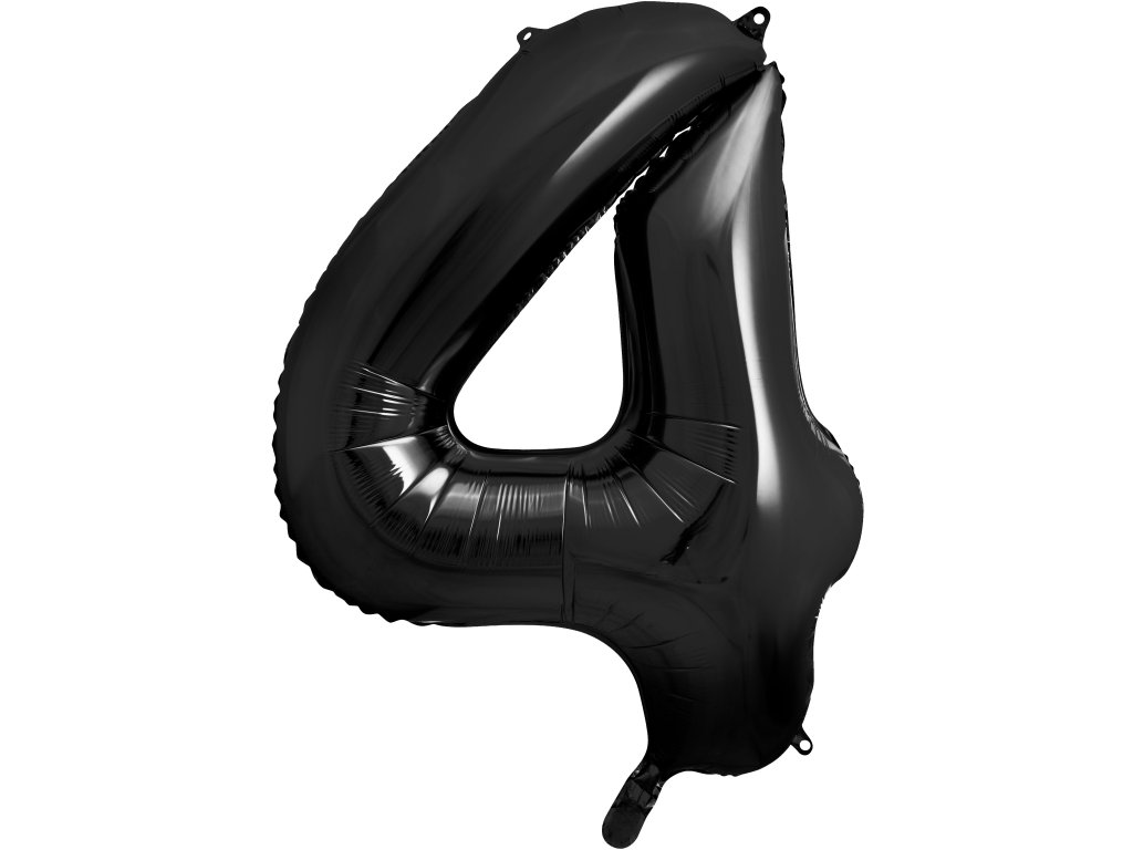 Balon z metalizowanej folii numer "4", w kolorze czarnym, rozmiar przed napompowaniem ok. 100 cm (39''), rozmiar po napompowaniu ok. 86 cm (34''). Napompuj helem lub powietrzem.