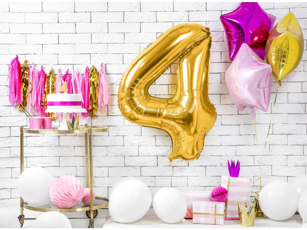 Foliový balón číslo 4, 86cm zlatý