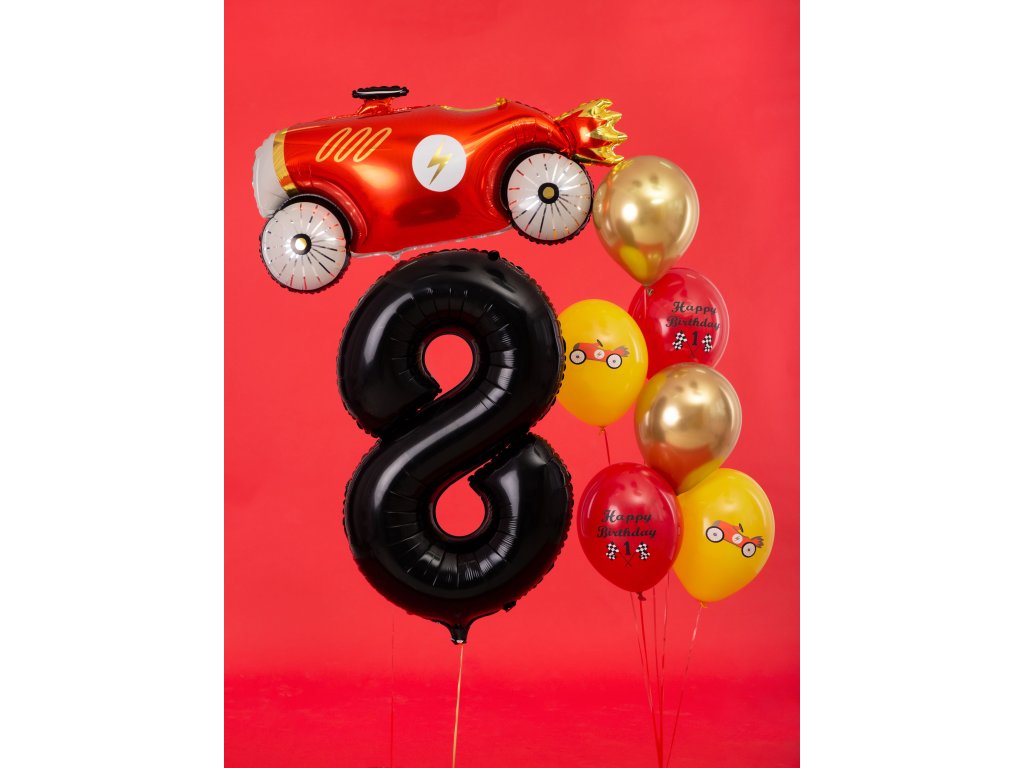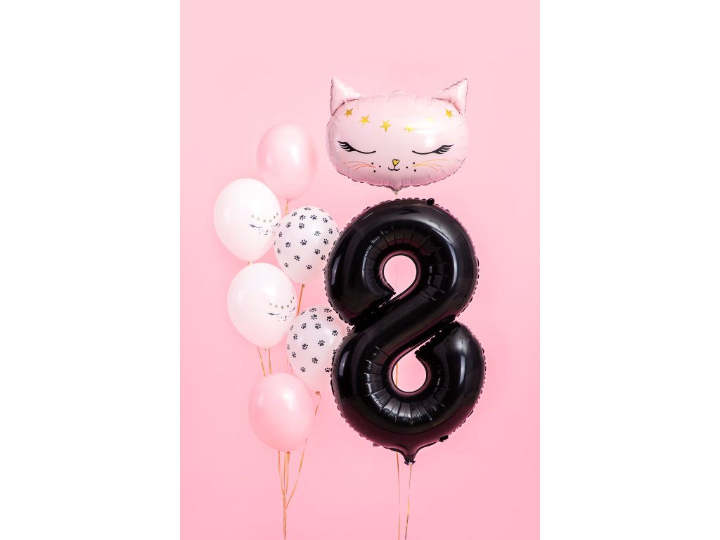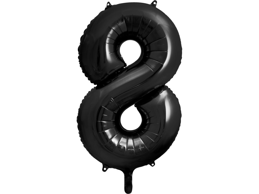 Balon z metalicznej folii numer ''8'', w kolorze czarnym, rozmiar przed napompowaniem ok. 100 cm (39''), rozmiar po napompowaniu ok. 86 cm (34''). Napompuj helem lub powietrzem.