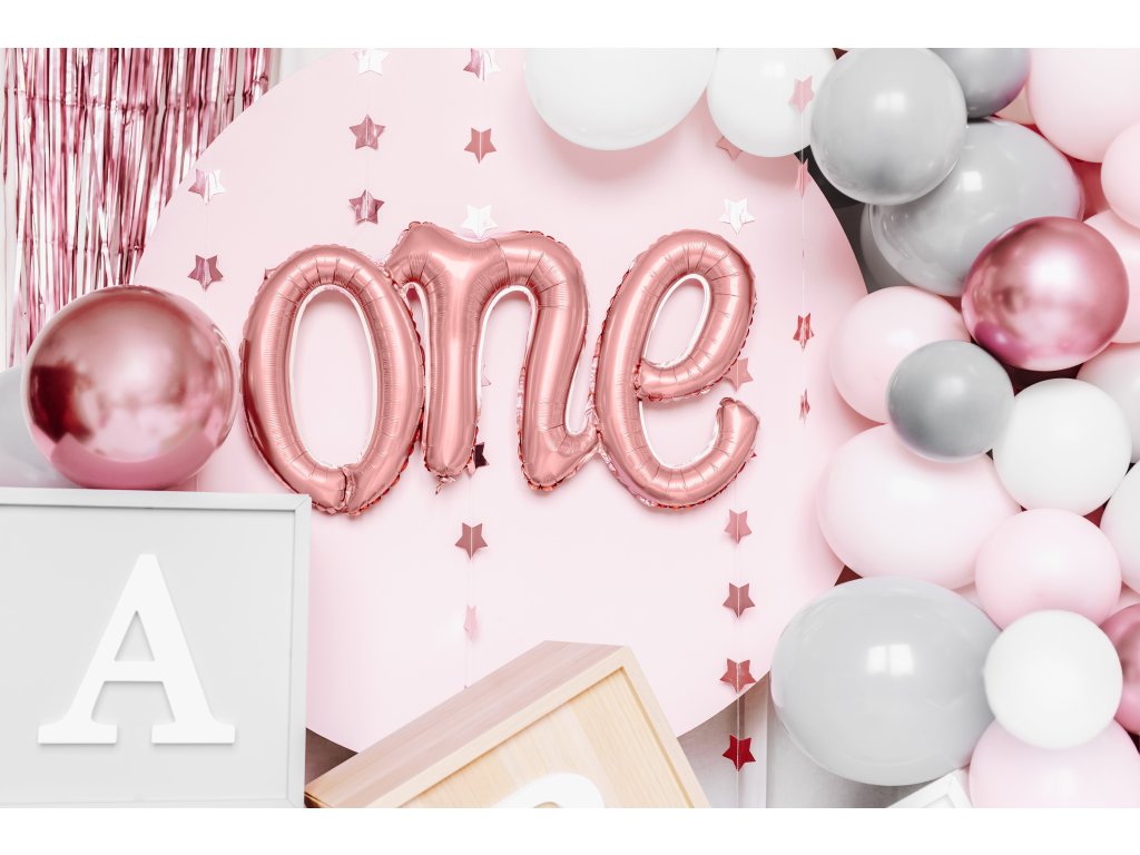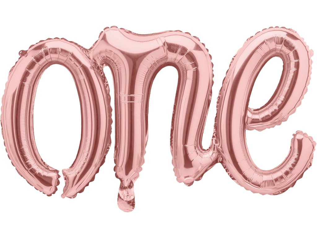 Balon z satynowej folii Jeden w kolorze różowego złota, rozmiar około 66 x 37 cm (26 x 14,5'').