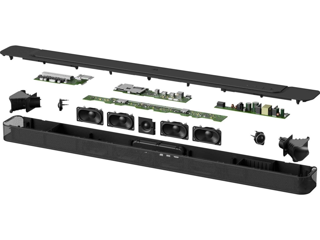 - Przetwornik soundbara: 4 x (46 x 90) mm owalne przetworniki, 3 x 0.75” (20mm) tweetery