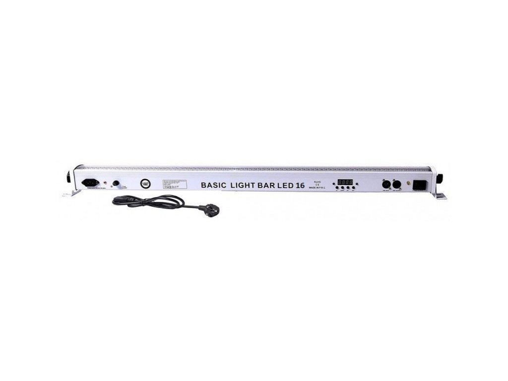LIGHT4ME BASIC LIGHT BAR LED 16 RGB IR to nowoczesny 16-pasmowy pasek LED, który jest wyposażony w łącznie 240 diod LED pracujących ze światłem w palecie RGB, którymi dodatkowo można sterować zdalnie za pomocą bezprzewodowego pilota. Strumień jest doskonały jako oświetlenie sceny i klubu, oświetlenie sal weselnych, pomieszczeń hotelowych i restauracyjnych, a także oświetlenie architektoniczne do oświetlania różnych elementów wystroju wnętrz.