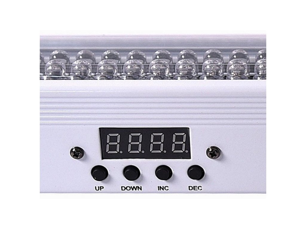 Belka LED jest wyposażona w panel sterowania składający się z cyfrowego wyświetlacza i czterech przycisków. Za jego pomocą możemy wybrać kolor statycznego oświetlenia paska lub jeden z innych trybów pracy: