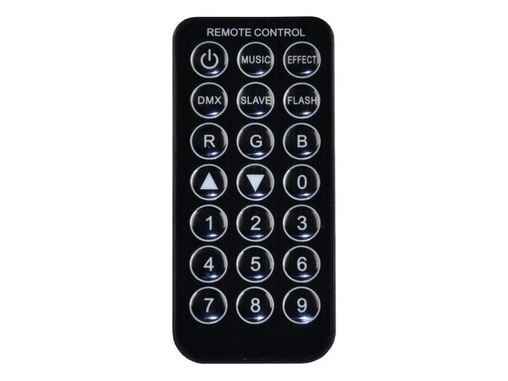 - Wejście i wyjście DMX: 3-pinowe złącza XLR (żeńskie, męskie)