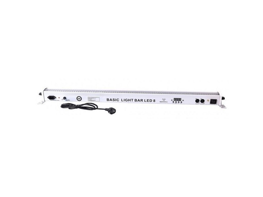 LIGHT4ME BASIC LIGHT BAR LED RGB 8 MKII to listwa oświetleniowa RGB o kącie 30 °, która oferuje wiele zastosowań. Nadaje się do scen, klubów, pubów, dyskotek lub sal weselnych, salonów i restauracji. Diody można podzielić na 8 segmentów. Listwa jest łatwa do zaprogramowania za pomocą panelu składającego się z czterech przycisków i wyświetlacza. Może być obsługiwana w trybie automatycznym, sterowaniu dźwiękiem, master / slave i DMX.