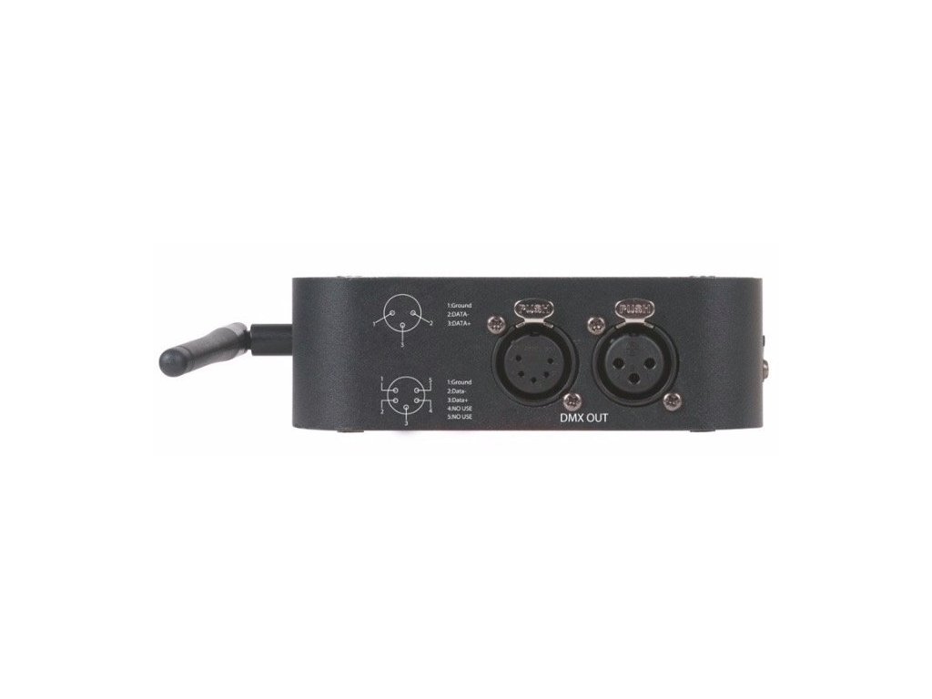 - Zasilany bateryjnie bezprzewodowy transceiver DMX (odbiornik/nadajnik w jednym)