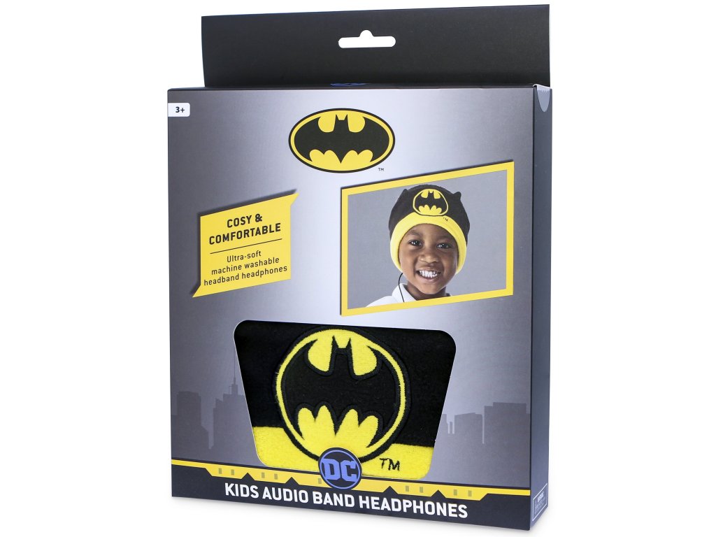 Dziecięca opaska na głowę ze słuchawkami z motywem Batmana. Uroczy design opaski na głowę ze słuchawkami firmy OTL jasno pokazuje, że nie jest ona przeznaczona dla każdego. Dzięki wesołym kolorom i ładnemu nadrukowi wywoła uśmiech od ucha do ucha przede wszystkim u dziecięcych słuchaczy. Wykonanie muzycznej opaski na głowę jest naprawdę leciutkie, a całkowita waga wynosi zaledwie 50 g. Podczas noszenia opaska jest bardzo przyjemna dzięki regulowanemu rozmiarowi za pomocą rzepu oraz dzięki uszyciu z miękkiego materiału polarowego. Można ją łatwo podłączyć do źródła dźwięku za pomocą kabla audio o długości 120 cm ze złączem jack 3,5 mm. Uszy słuchaczy zostaną zaopatrzone w czysty dźwięk, ponieważ słuchawki są wyposażone w wydajne przetworniki 20 mm. Ultra płaskie głośniki można odłączyć od opaski muzycznej, dlatego w razie potrzeby można je oddzielić, a opaskę wyprać w pralce. Opaska ze słuchawkami jest przeznaczona dla dzieci w wieku 3 lat i więcej.
