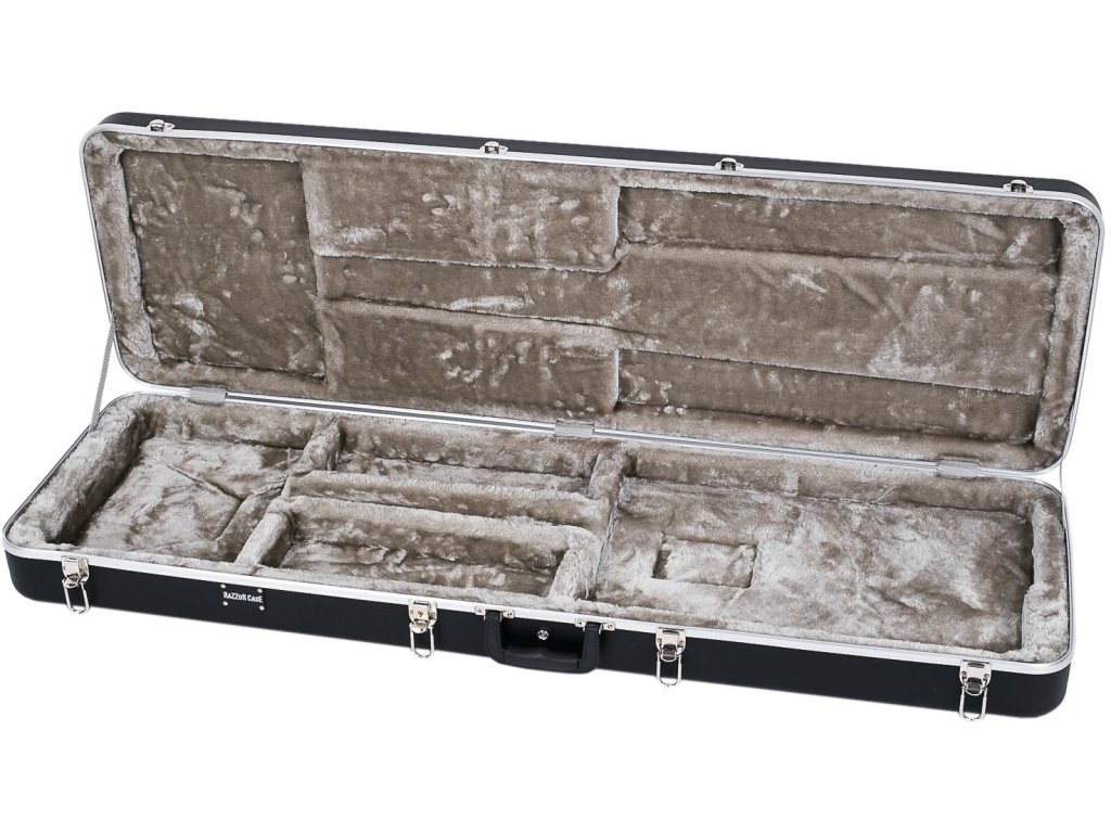 Pasuje do większości gitar basowych typu Jazzbass i Precision bass. Wnętrze kufra wyściełane czarnym pluszem z kieszeniami na akcesoria, kostki lub pasek. W porównaniu do innych kufrów ABS, RaZZor Case jest wzmocniony specjalnym materiałem EPS foam, który gwarantuje 100% bezpieczeństwa Twojemu instrumentowi.