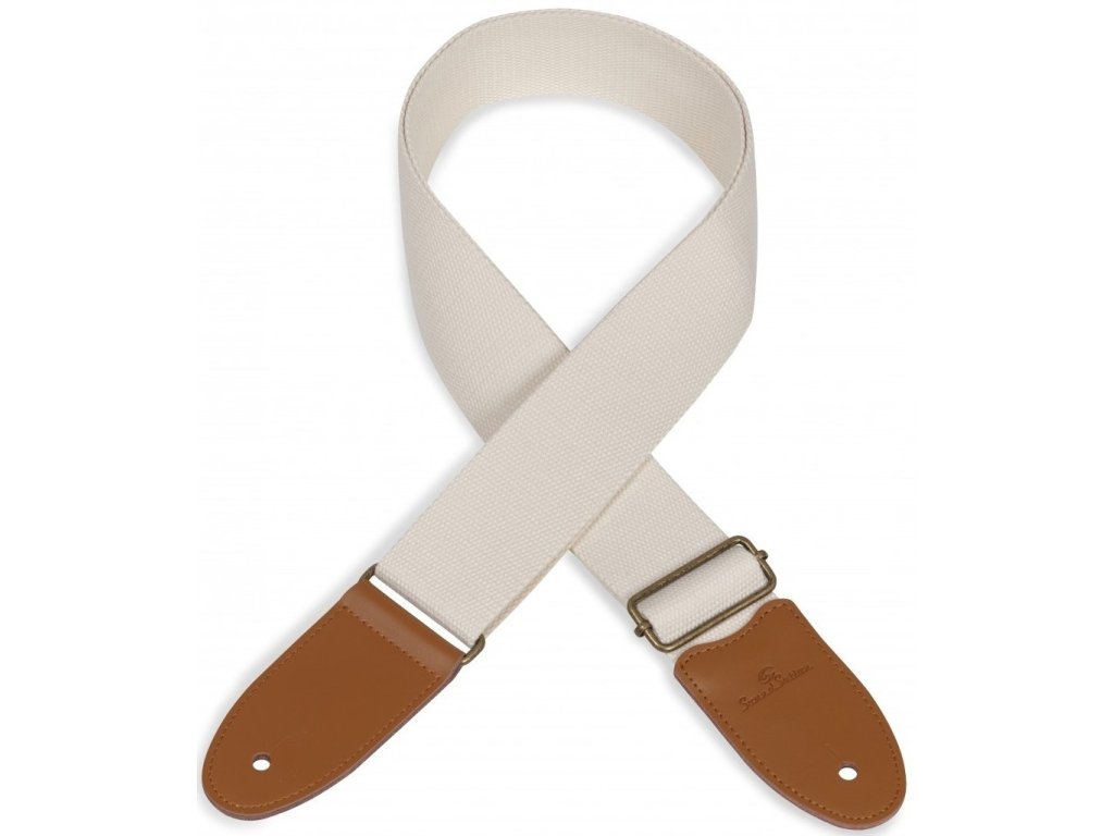 Bawełniany pasek z końcówkami z wysokiej jakości skóry. Oczywista jest regulowana długość, do której służy mosiężna klamra.
