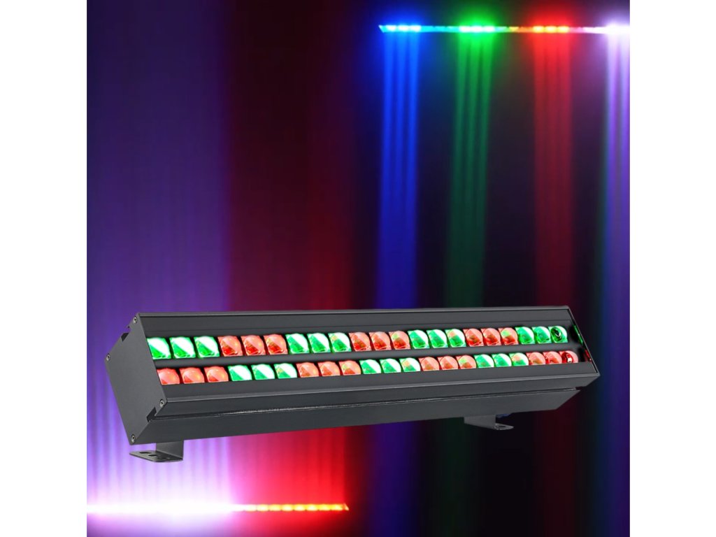 Light4Me Beam Wash Bar to wydajne źródło dynamicznego światła, które odmieni każdą przestrzeń koncertową, sceniczną lub eventową. Dzięki czterdziestu dwóm diodom RGB (czerwony, zielony, niebieski) o mocy 8 W każda i precyzyjnej, wąskiej wiązce o kącie 4° uzyskasz spektakularne efekty barwne, które podkreślą atmosferę każdej imprezy. Możliwość wyboru spośród 49 kolorów statycznych i 85 efektów w trybie automatycznym z regulacją prędkości sprawia, że urządzenie prezentuje się efektownie zarówno w trybie DMX, jak i w trybie auto czy sound. Doskonale sprawdzi się w klubach muzycznych, teatrach, hotelowych salach konferencyjnych lub jako oświetlenie dekoracyjne sal weselnych.