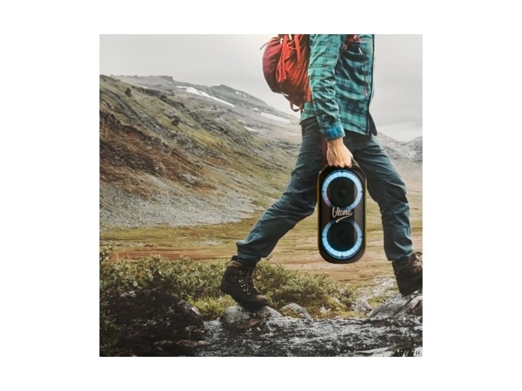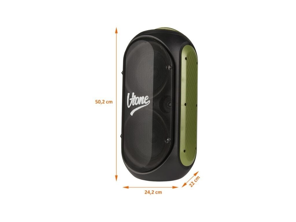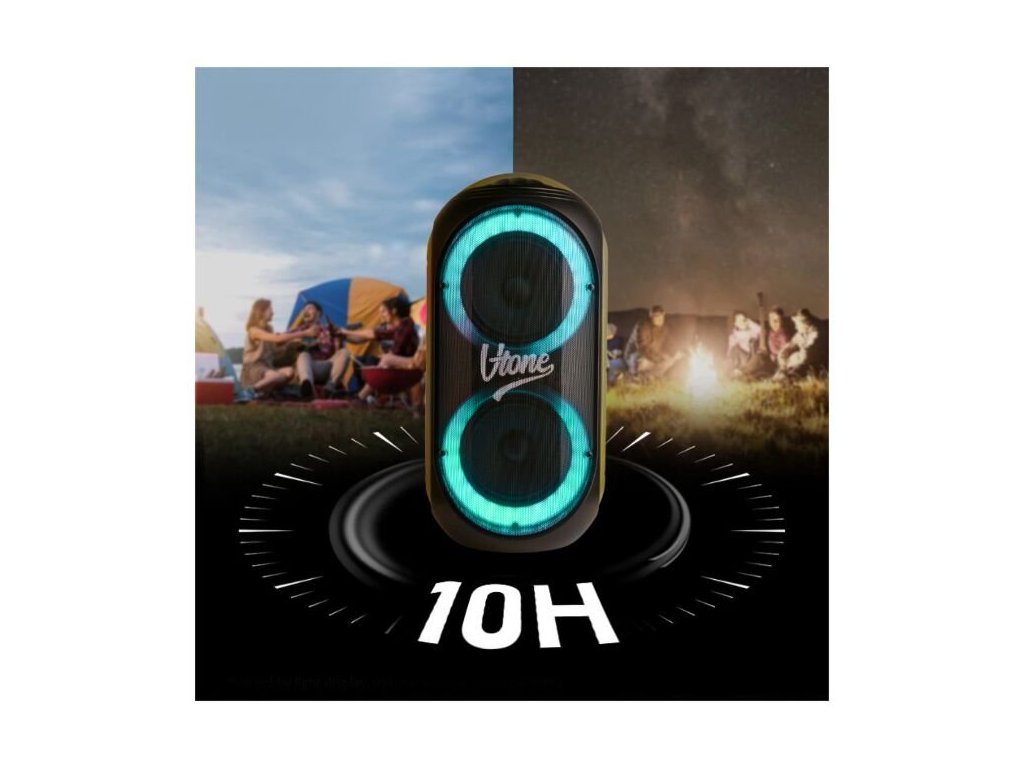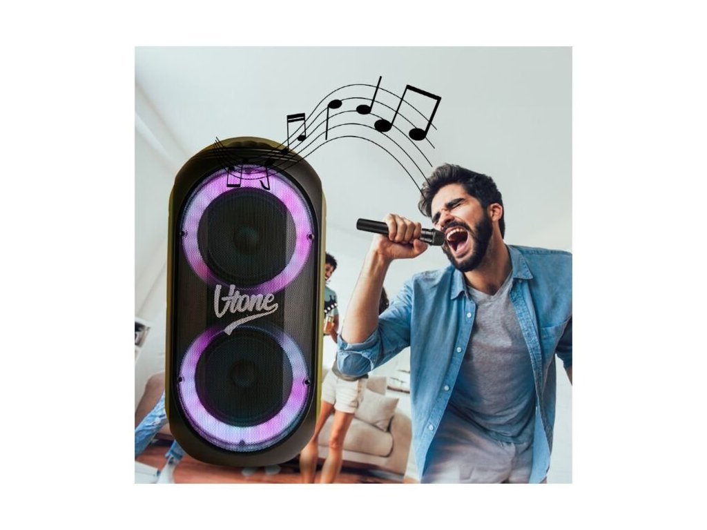 V-tone BeFree to nowoczesny, przenośny głośnik zasilany wydajnym akumulatorem, wyposażony w bezprzewodowy mikrofon dynamiczny, dwa wejścia gitarowe, dwa wejścia mikrofonowe, wejście AUX, port USB, gniazdo kart TF (microSD), obsługę radia FM, Bluetooth, funkcję nagrywania i wbudowany odtwarzacz audio, a także dwa podświetlane diodami LED głośniki o łącznej mocy 30 W. Urządzenie idealnie nadaje się na imprezy domowe, imprezy plenerowe, wakacyjne pobyty, ogniska i wieczory karaoke z przyjaciółmi, działkę rekreacyjną, a także jako nagłośnienie dla artystów ulicznych i zespołów buskingowych.