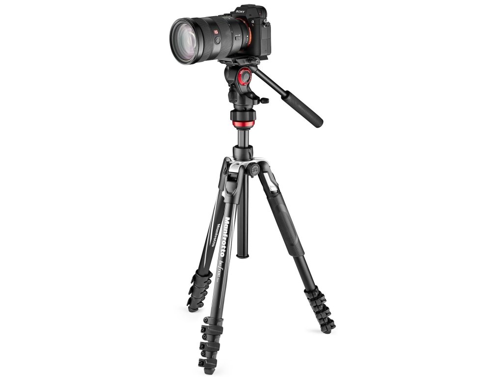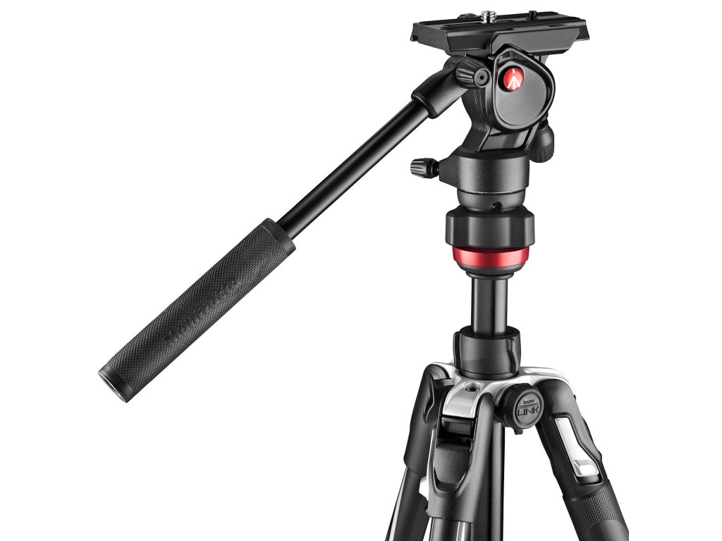 Lekki aluminiowy statyw z małą głowicą wideo z płynnym ruchem, udźwig statywu wynosi 4 kg. Dźwignia do płynnego ruchu głowicy jest regulowana i zdejmowana. Złącze Easy Link umożliwia podłączenie ramienia do mocowania akcesoriów. Szybkozłączka 501PL jest kompatybilna z innymi głowicami wideo Manfrotto. Po złożeniu ma niewielkie wymiary 40 cm, a waga statywu wynosi 1,75 kg. Dzięki temu ma dobre predyspozycje do podróżowania, na łono natury, ale także na lekkie wycieczki.