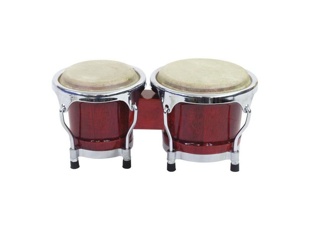 Profesjonalny zestaw bongo, 4" + 5", kolor bordowy. Drewniane korpusy z naturalną skórą. Tradycyjne obręcze napinające.