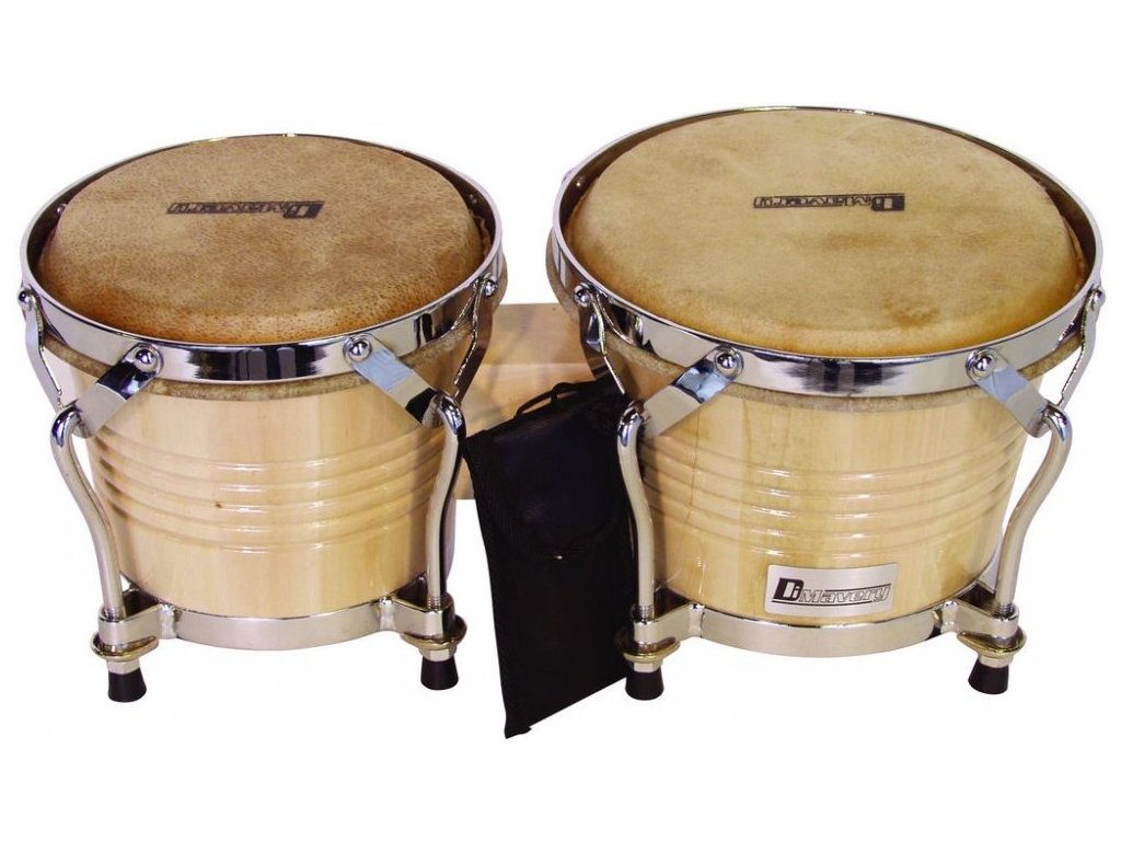 Profesjonalny zestaw bongo, 6,5" + 7,5", kolor naturalny jasnobrązowy. Drewniane korpusy z naturalną skórą. Tradycyjne obręcze napinające.